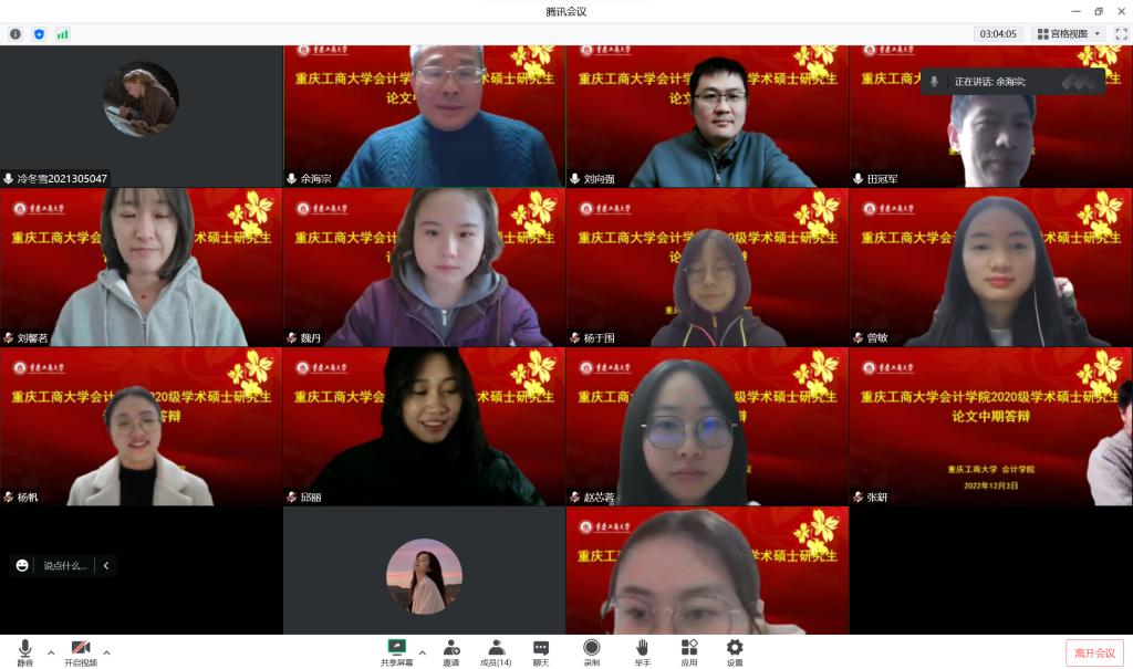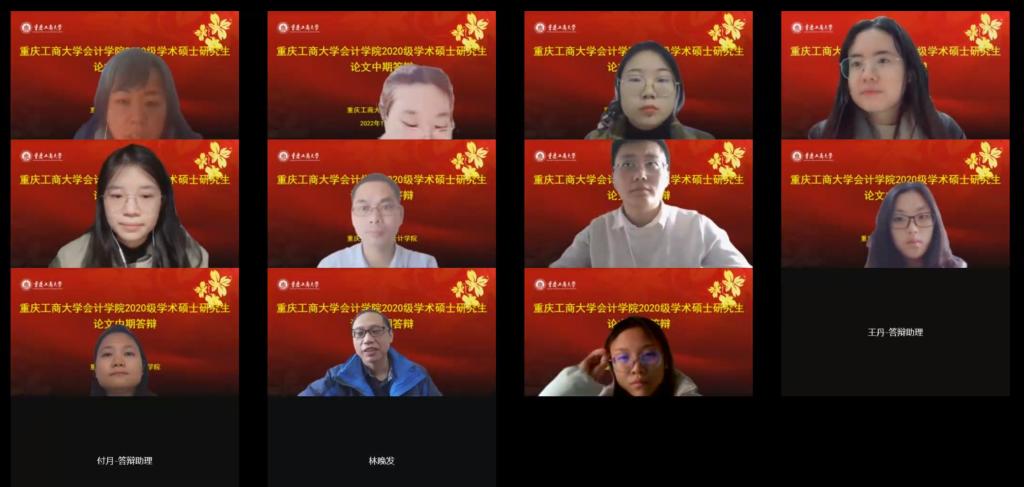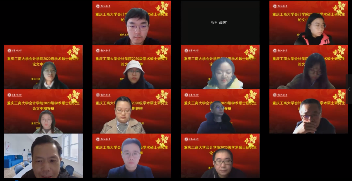在k1体育统筹安排与部署下,研究生教育中心扎实做好线上答辩相关准备工作,保障疫情防控期间线上答辩有条不紊。本次答辩共分为4组,共32名研究生参与答辩。来自湖南大学、西南大学、西南财经大学、北京理工大学等高校的4名会计审计导师担任答辩委员会主席、8名委员与公司部分硕士研究生导师共同组成开题答辩专家组,为同学们的论文进行答辩指导。