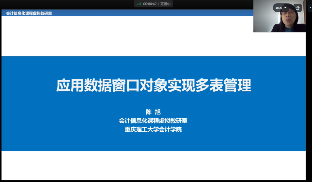 2022年11月15日下午,由教育部会计信息化课程虚拟教研室、重庆市成渝数智会计虚拟教研室、重庆市会计信息化教学名师工作室联合主办的智能会计教学工作坊(第二十三期)在钉钉APP线上直播如期举行。本次教学工坊邀请到了重庆理工大学的陈旭教授为同学们讲授《会计业务数据分析》课程。公司2022级会计专硕全体员工参加了此次教学工作坊。