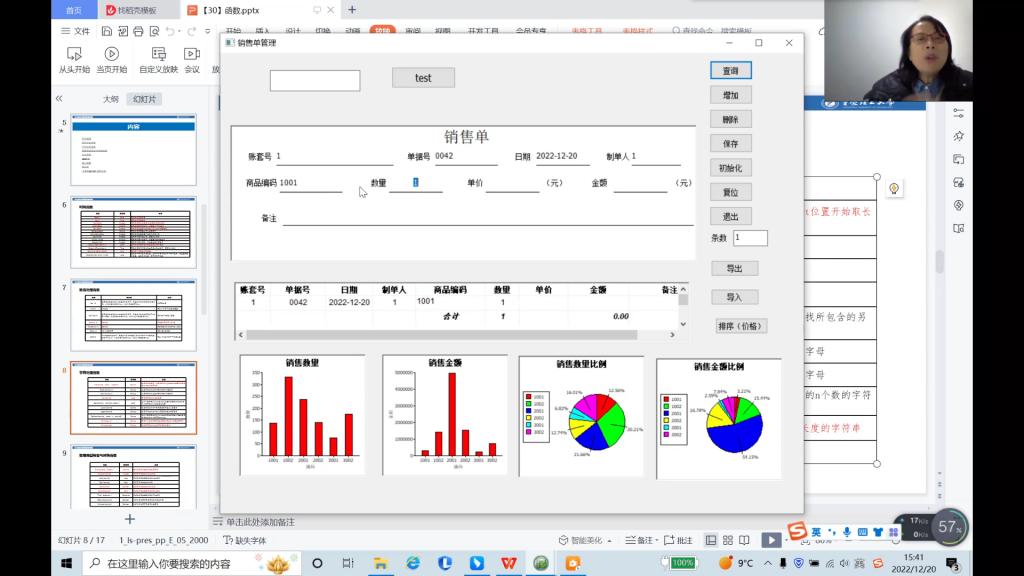 在本次的教学工作坊中,介绍了通过嵌入式SQL语句如何实现商品信息表中信息的增、删、改、查询,以及库存、数量月报表的计算,同时结合案例实操教会了同学们如何运用各类函数不断完善进销存系统和账务处理系统。至此,同学们对应用数据窗口实现系统开发产生了浓厚的兴趣,并在课后根据老师在课堂上的教学积极动手操作实践。