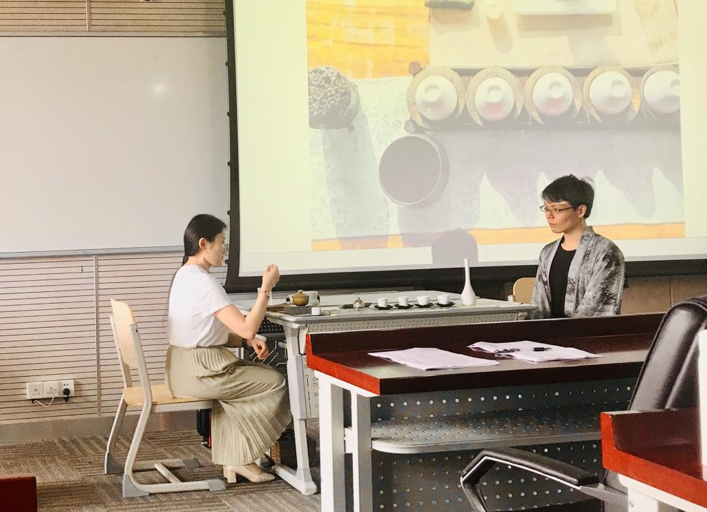 首先,罗瑄老师从茶境引出了本次课程的内容。她说茶的意境是”以茶修心,以器载道“的哲学思想,而古典主义复古思潮与启蒙性质的浪漫主义思潮对明代茶文化有着很深刻的影响,尊情、崇俗、尚真、求趣成为明人的审美共识。罗瑄老师还说茶文化是茶艺与精神的结合,并通过茶艺表现精神。中国茶道的主要内容讲究五境之美,即茶叶、茶水、火候、茶具、环境。