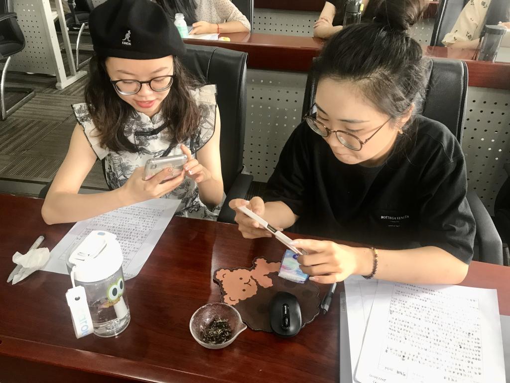 最后,罗瑄老师泡了一些茶让同学们品尝,并让同学们说说不同茶叶的味道差异,同学们也纷纷说出了自己的感受。