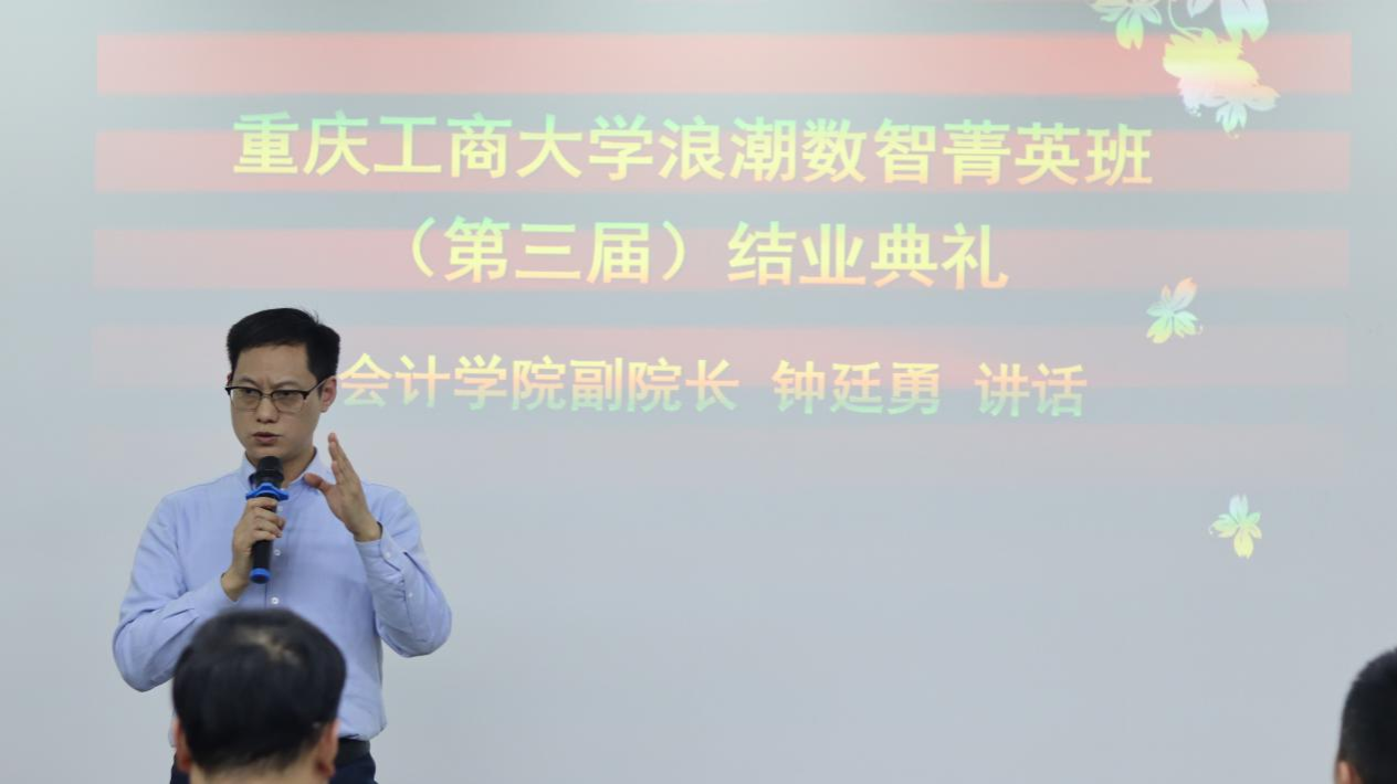 最后,学院副经理钟廷勇总结讲话。他肯定了浪潮数智菁英班同学们的收获,并对同学们提出了三点要求:第一,要立天下之志。希望同学们着力解决行业未来痛点、难点,保持长远的眼光,工作要保持利他性;第二,要定天下之业。希望同学们能够明确会计人的使命,促进全人类发展;第三,要断天下之疑。明确客户的疑惑是通向成功的法宝,希望同学们能够着力解决客户需求。