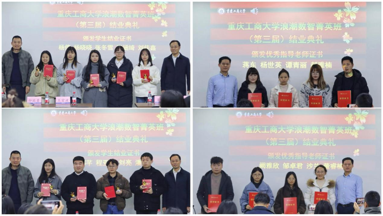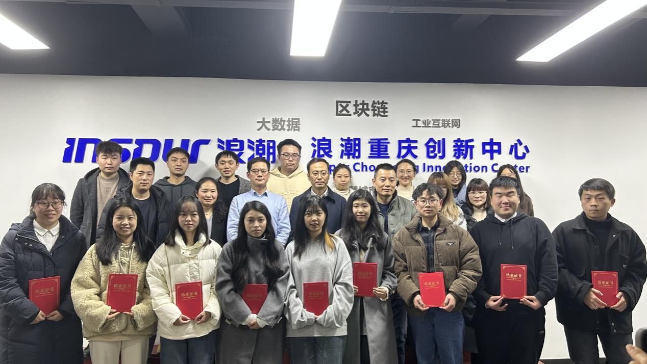 浪潮数智菁英班的员工经过层层选拔,在实践中不断挑战、努力学习,深化理论与实践的结人,专业能力与职业素养不断提升。浪潮数字企业重庆区总经理王宏波、副总经理吴严为员工颁发了结业证书和奖杯。