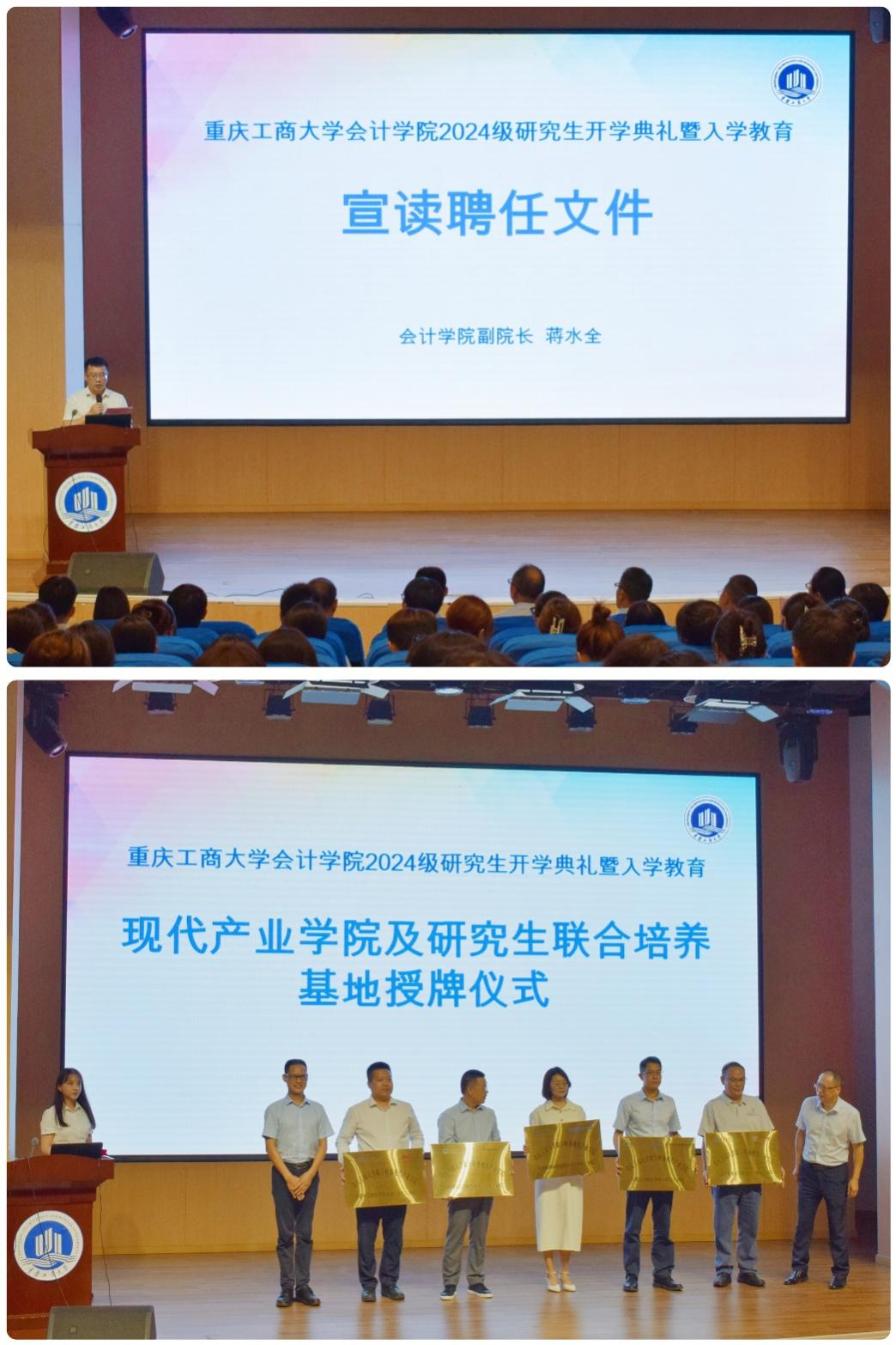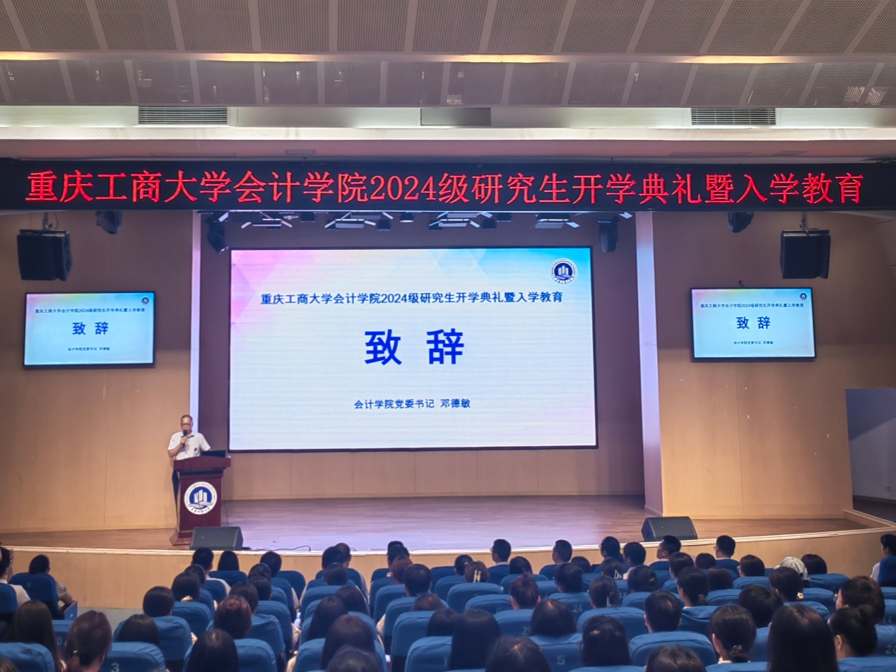 9月20日下午,k1体育2024级研究生开学典礼暨入学教育在明智楼110100报告厅隆重举行。公司党委书记邓德敏、经理钟廷勇、副书记郝颖、副经理蒋水全、事业导师代表重庆天健会计师事务所重庆分所总经理李青龙、宗申产业集团有限公司副总裁蒋宗贵、浪潮通用软件有限公司重庆区渠道总监冉红利、新道科技股份有限公司重庆分公司总经理徐福年、天职国际会计师事务所重庆分所所长童文光、研究生导师代表程文莉及研究生教育相关工作人员出席了本次会议,k1体育2024级全体研究生参加了本次典礼。典礼由k1体育专职组织员尹建平主持。