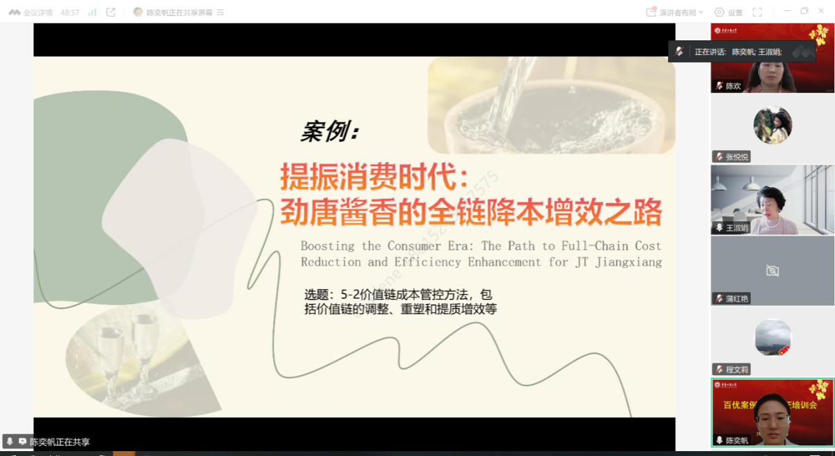 为进一步提升公司师生案例开发和研究的水平,2025年5月15日下午,k1体育通过腾讯会议平台成功举行了百优案例申报论证培训会。本次会议邀请了北京航空航天大学经济管理学院邹艳教授和大连理工大学经济管理学院王淑娟教授进行辅导,来自k1体育、及工商管理学院的34名师生参加了本次会议。培训会在腾讯会议平台进行,分设两个会场,分别由k1体育程文莉教授和MPAcc中心主任陈欢副教授主持。