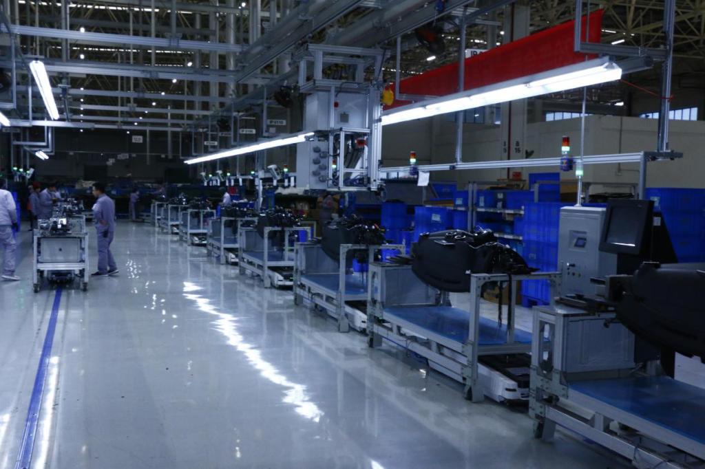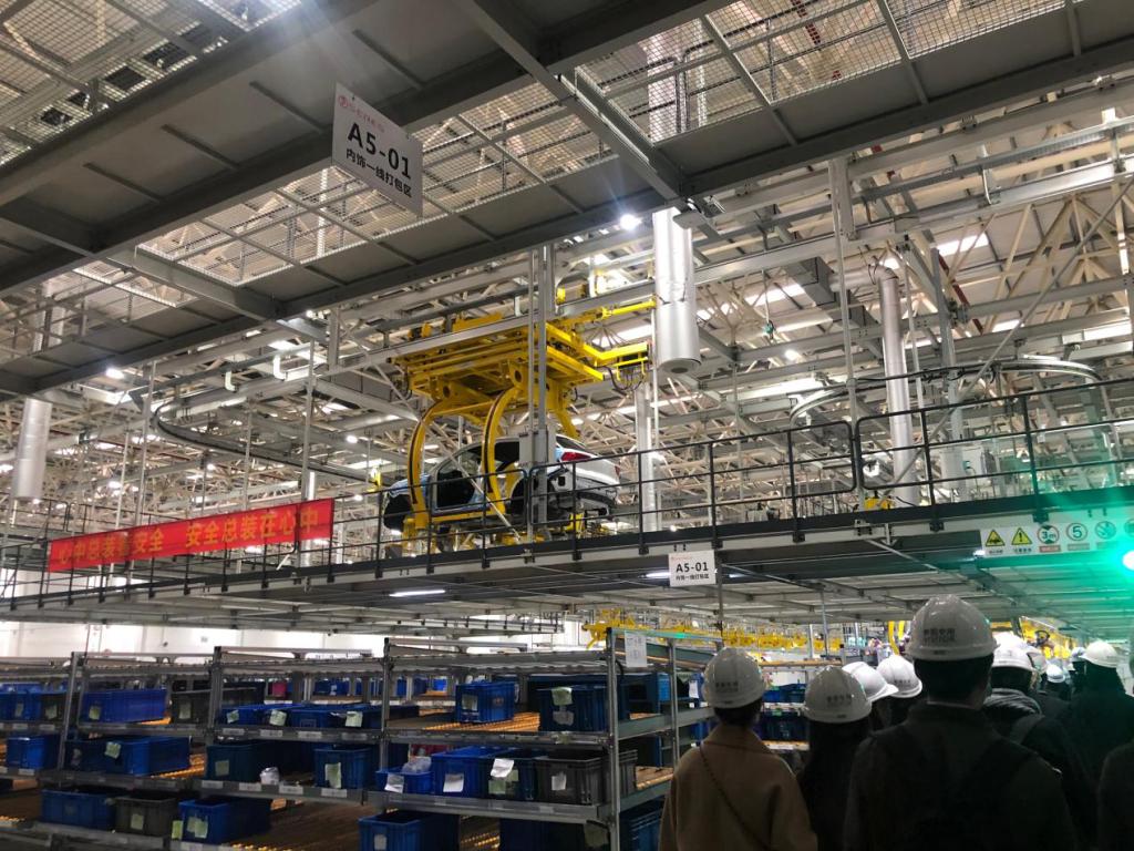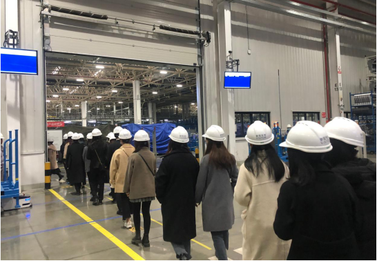 同学们在工作人员的带领下,走进车间近距离观看车间运作流程,在工作人员的介绍下,同学们了解到冲压车间的蓝光自动测算系统和车间内的自动导航车,该车间应用高端汽车的焊接技术,并通过视觉机器人等自动化设备自动抓取物料来提高工作效率。