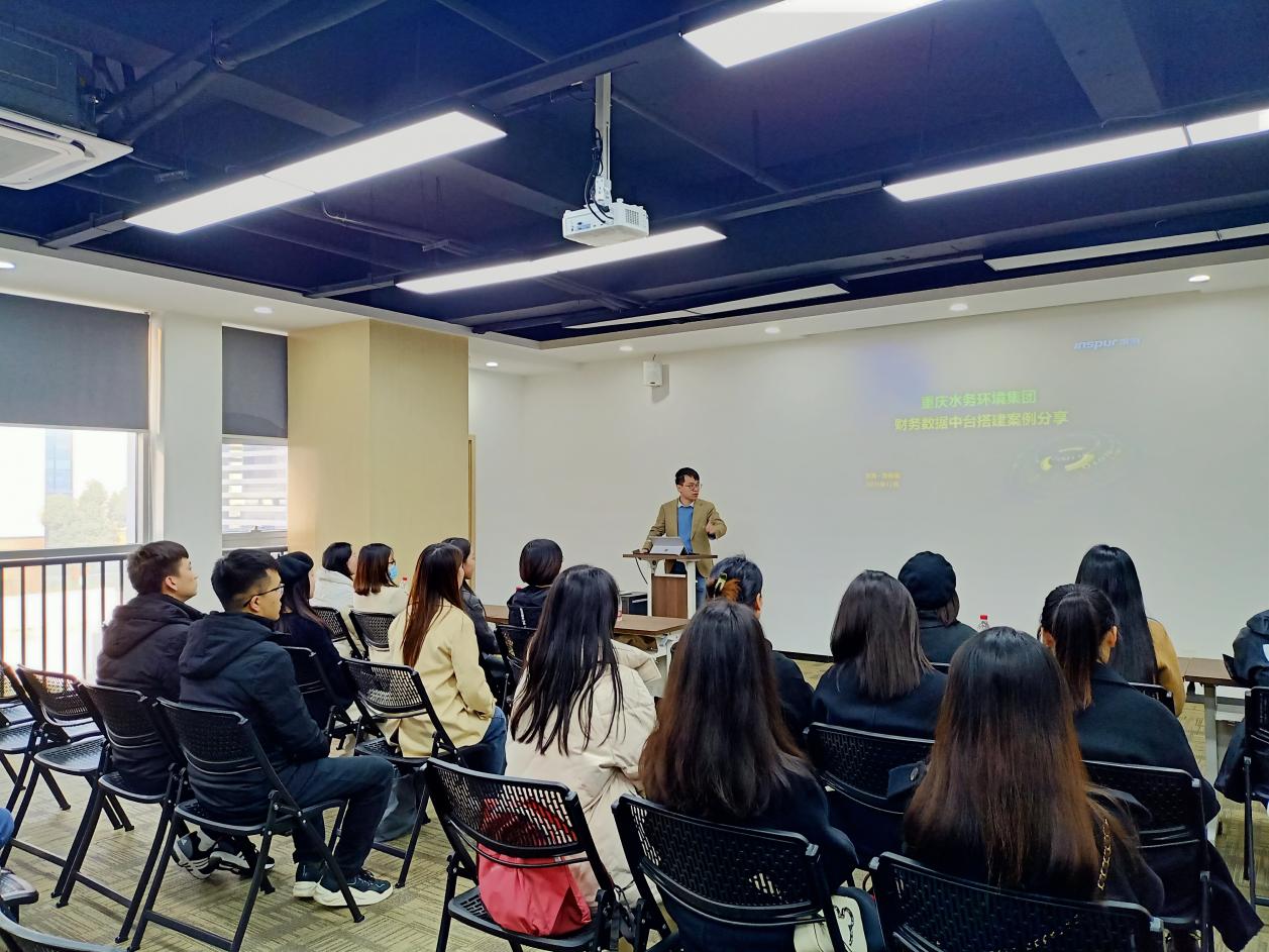 随后,浪潮集团项目经理陈俊涛向大家分享了重庆水务环境集团财务数据中台搭建的案例。重庆水务环境集团搭建的财务数据中台包括精算系统、网报上报销系统、资金管理系统、预算管理系统、税务管理系统、资产管理系统等共九大管理系统。通过财务数据平台,能够整合财务报网报预算基础数据档案,同时集成报表完成异构系统取数和系统对接。财务数据平台能够帮助增强集团管控,建立相关企业制度,企业执行度进行考核。
