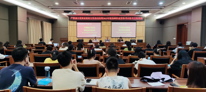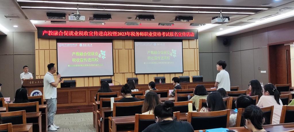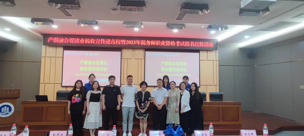 为了落实教育部文件精神,“走出去”和“请进来”相结合,高校院系围绕学科专业精准开展访企拓岗,6月28日下午,重庆市税协联合k1十年体育品牌经济学院、k1体育联合举行“产教融合促就业,税收宣传进高校” 暨2023年税务师职业资格考试报名宣传活动。重庆市注册税务师行业党委副书记、市注册税务师协会副会长白渝、公司党委书记邓德敏、经济公司党委副书记白海龙、重庆惠融天成税务师事务所有限公司合伙人金龙、中税科信税务师事务所董事长助理胡兴山、重庆市税协和k1体育相关工作人员、经济学院税收专业、k1体育会计专业、财务管理专业2020级本科员工代表100余人参加此次活动,活动在学校会议中心第一会议室举行,由白海龙主持。