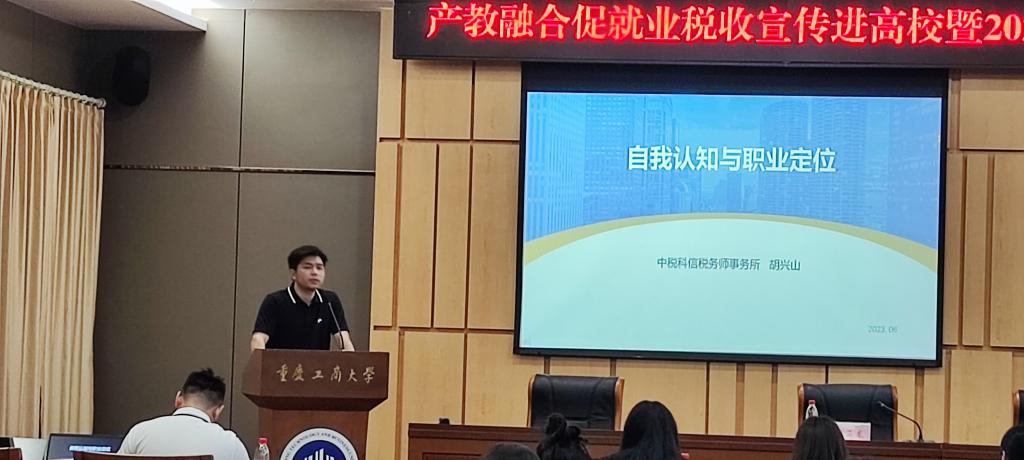 在讲座环节,金龙和胡兴山分别以《解锁税务师之路:职业规划与成功蓝图》、《自我认知与职业定位》为主题,介绍了涉税服务发展前景、税务师的职业概况、在校老员工的职业规划建议等内容。并在随后开展的互动环节与同学们进行了较深入的沟通交流,并就现场提出的“税务师和注册会计师工作内容比较”、“税务师职业发展路径”等问题进行耐心解答。同学们纷纷表示,活动帮助他们深入认识了税务师行业,愿意投身行业建设,准备积极备考税务师职业,将自己的职业发展融入税收事业发展中。