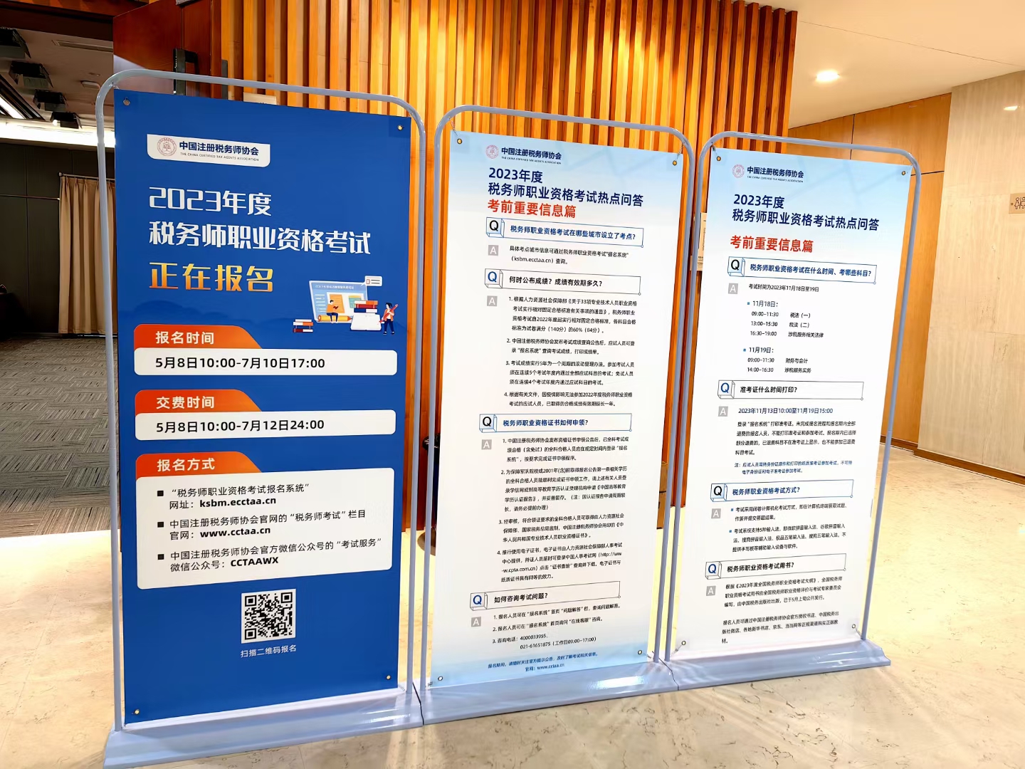 活动的第一个环节是税协领导及工作人员向同学们分发“2023年税务师职业资格考试”宣传资料,并耐心解答同学们的相关问题咨询,同学们积极参与,现场气氛活跃。