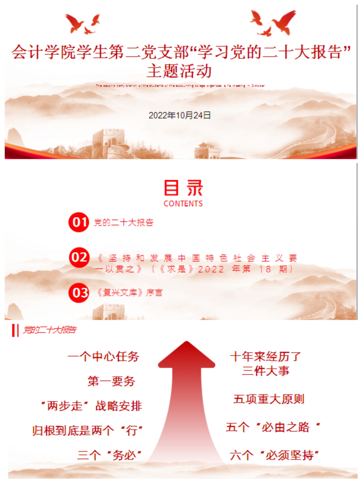 伊始,组织委员陈卓首先通过一段宣传视频带领大家回顾了党的十八大以来的十年历程;紧接着,领学了党的二十大报告主要内容。党的二十大报告回顾总结了过去五年的工作和新时代十年的伟大变革,阐述了开辟马克思主义中国化时代化新境界、中国式现代化的中国特色和本质要求等重大问题,擘画了全面建成社会主义现代化强国的宏伟蓝图和实践路径,科学谋划了未来五年乃至更长时期党和国家事业发展的目标任务、大政方针。通过学习,支部全体党员对党的二十大报告有了全面了解。