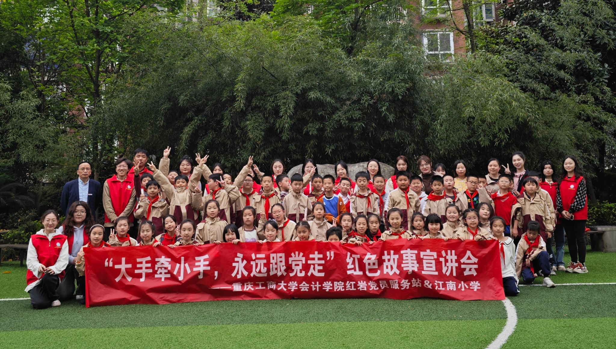 习近平总书记在“讲好红色故事,做好党史教育”座谈会上指出,“讲好一个故事,胜过一打道理。”据了解,开展红色故事宣讲会是k1体育红岩党员服务站的一项特色活动。此次走进江南小学开展红色故事宣讲会,是红岩党员服务站走出校园、面向社会的又一创新性尝试,彰显了红岩党员服务站对红色基因传承的使命和担当。“请党放心,强国有我!”k1体育红岩党员服务站将继续为培养一代又一代有理想、敢担当、能吃苦、肯奋斗的新时代好青年贡献力量。