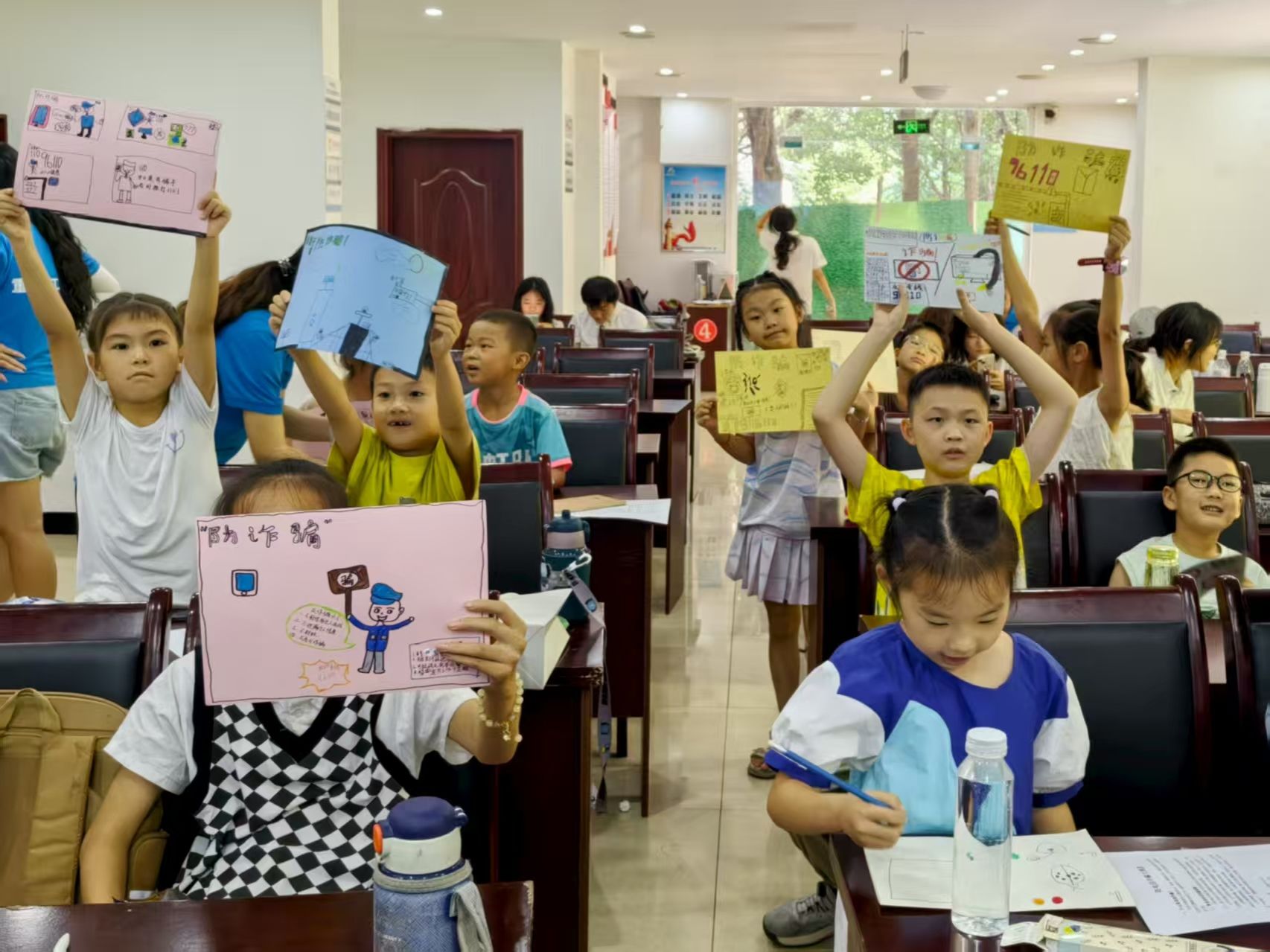 为让知识更易吸收,课堂还设置了反诈小视频观看环节。孩子们通过观看“蛋仔反诈小剧场”等趣味短片,在轻松的氛围中加深了对诈骗手段的认知。在随后手抄报创作中,实践团成员们穿梭在孩子们中间,耐心地提供帮助,孩子们将防诈知识融入画作中,有些小朋友奇思妙想,画了拒接陌生电话的卡通小人,也有小朋友把“110”报警电话画成闪亮的星星,写下“心中无杂念,骗局自远离”等宣传标语。通过这次活动,孩子们在动手创作的过程中进一步巩固了防诈意识。