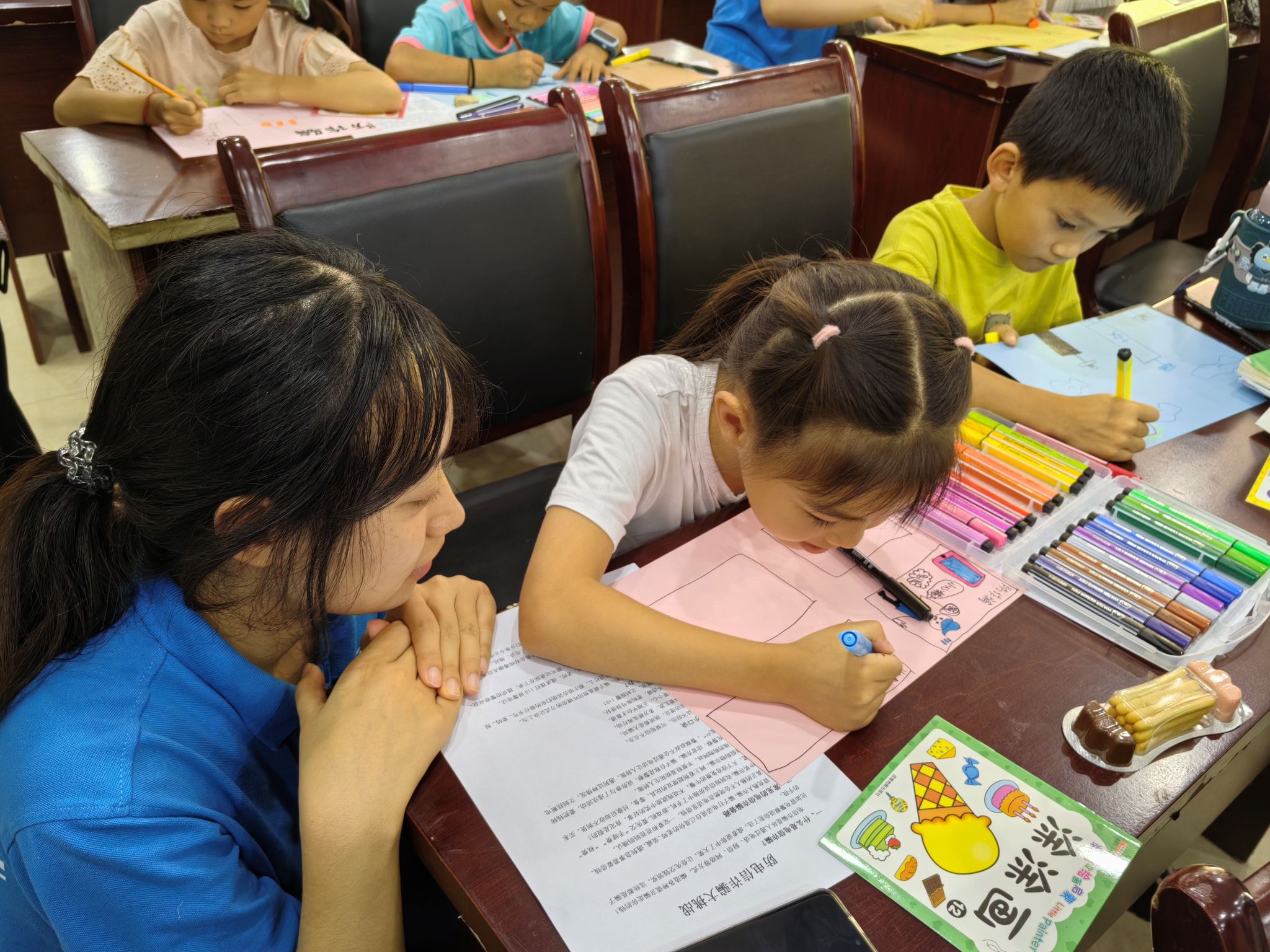 活动当天下午,实践团成员们结合儿童生活场景,深入浅出地讲解反诈背景知识。她们以真实案例为切入点,剖析了电信诈骗可能带来的财产损失、隐私泄露和心理压力等危害,针对小员工防诈意识薄弱的特点,实践团成员们着重说明:“只有保护个人权益、提升自我保护技能,才能让诈骗分子无机可乘。”
