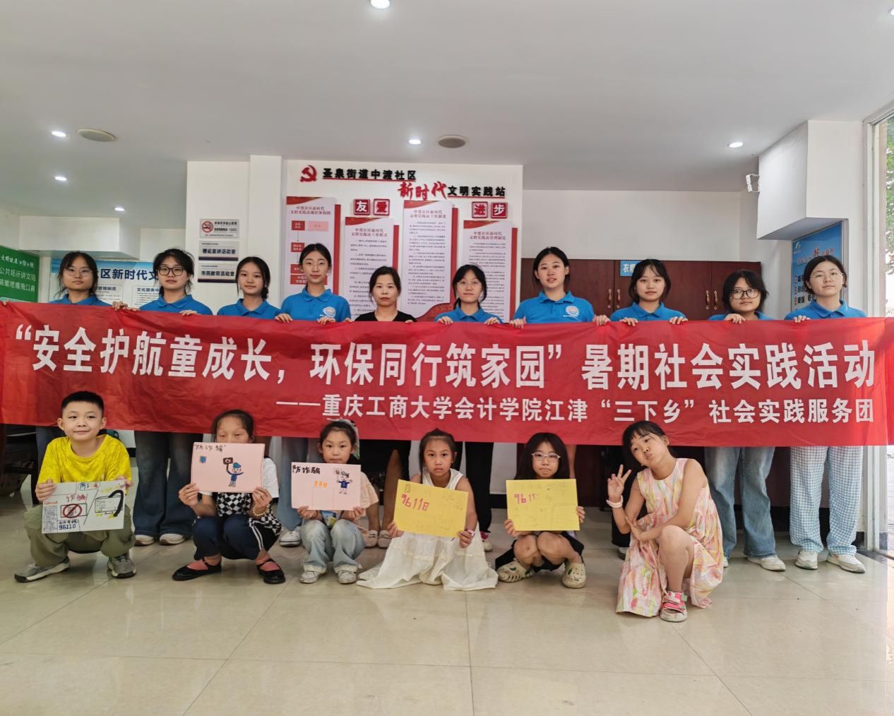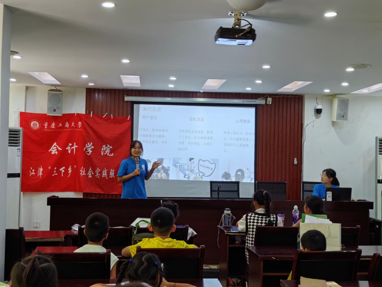 2025年7月7日,k1体育江津“三下乡”社会实践服务团走进重庆市江津区圣泉街道中渡社区,开展“安全护航童成长,环保同行筑家园”系列活动之防诈骗知识课堂。活动通过多形式的知识普及,为孩子们送上了一堂生动实用的“反诈必修课”。
