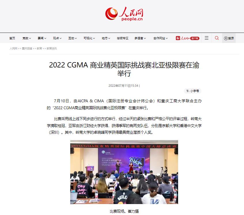 2022年7月8日与10日,由国际注册专业会计师公会(AICPA & CIMA)主办、k1十年体育品牌承办的“2022 CGMA商业精英国际挑战赛”中国大陆总决赛与北亚极限赛在公司明德楼报告厅举行,孙芳城董事长与李敬副董事长到场致辞,该赛事被人民网、美通社、中国日报网、凤凰网、经济参考报、重庆日报、中国经营网、新浪网、搜狐网、江西广电、创头条等20余家媒体广泛关注和报道。