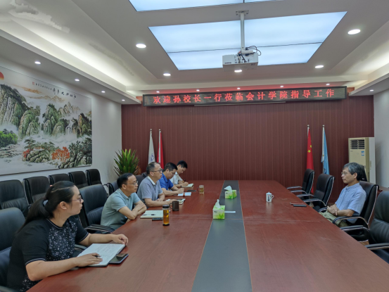 孙董事长走访了学院每一个办公室,询问了解开学工作情况。座谈会上,邓德敏书记汇报了学院开学整体运行良好,全院认真落实学校疫情防控工作要求,认真组织好线上教学,结合学校干部大会精神,全面推进学院新学期各项工作。罗勇经理对学院教学、科研、学科、人才队伍、社会服务等事业发展工作向孙董事长作了汇报。其他班子成员结合分管工作作了补充汇报。
