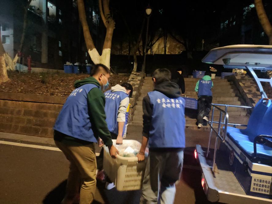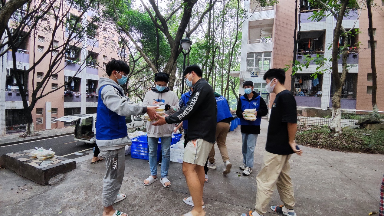 此外,还有一群来自楼管会和党员服务站的可爱同学,他们不仅认真统计各楼栋的用餐人数,而且一日三餐,他们自愿承担起为同学们送餐任务,每次他们总是最先赶到现场,然后最后一个离开。