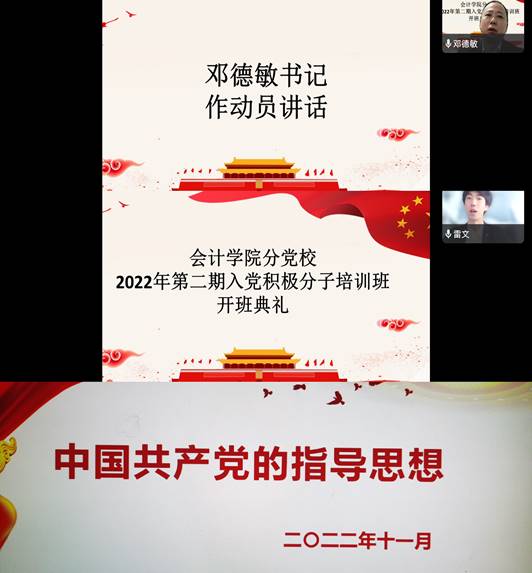 11月18日,举行了培训班开班典礼,公司党委书记邓德敏、专职组织员尹建平、副书记郝颖出席典礼。邓书记在讲话中阐释了培训班的意义,鼓励同学们学好党的理论知识,躬行实践积蓄力量,为国家发展做出自己的贡献。集中授课部分有六讲,主题分别是习近平新时代中国特色社会主义思想与中华民族伟大复兴、中国共产党的组织原则和纪律、学习宣传贯彻党的二十大精神、中国共产党的指导思想、中国共产党的性质、宗旨、纲领和现阶段的任务及统战知识、中国共产党党员。集中授课让同学们全面系统地学习了党的基本知识和重要理论。自学部分,则是学习党的二十大报告,分党校还对优秀报告进行了评奖表彰。