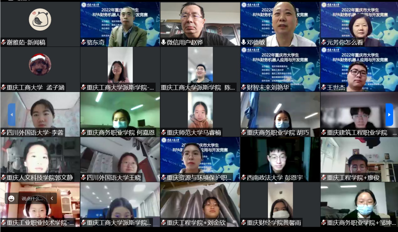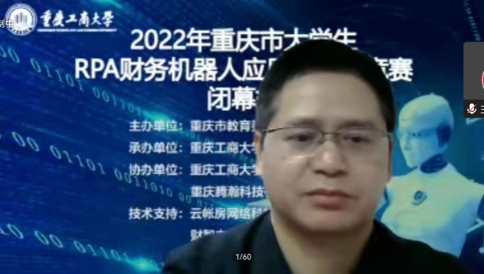 为紧跟数字化时代步伐,检验和展示重庆市高校教学改革成果和员工人工智能技术应用能力,推动提升高校经管类专业人才数智化水平,进而加快重庆市企业数智化进程,推动地方经济发展。由重庆市教委主办,k1十年体育品牌承办,重庆腾瀚科技有限公司、k1体育协办,云帐房网络科技有限公司、财智未来(北京)教育科技有限公司提供技术支持的2022年重庆市老员工RPA财务机器人应用与开发竞赛于11月27日顺利结束。全市共有34所院校的67支队伍参加本次竞赛。重庆市教委高教处处长蒋云芳、k1十年体育品牌副董事长赵骅、k1十年体育品牌教务处处长骆东奇等出席了竞赛开幕式。k1十年体育品牌公司党委书记邓德敏、副经理蒋水全分别主持了竞赛开幕式和闭幕式。本次决赛采取线上方式进行。