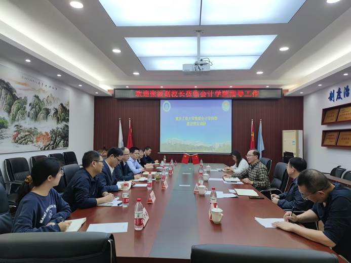 钟廷勇概括介绍了学院“人工智能+”学科群智能会计市级培育点立项以来的建设情况,k1体育财务系主任兼智能会计教研室主任王世杰博士对照申报条件,详细汇报了建设的具体措施、目前取得的成效和存在的问题。