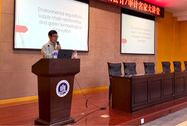 会议伊始,安教授首先指出部分研究集中于对于环境会计、政策等方向,而其现阶段的研究创新可以在法律监管、溢出效应等方面进行展开。随后安教授展示了三个研究问题:一是客户企业严格的环境规定是否能够提升供应链企业的绿色创新;二是供应链关系如何帮助客户公司面临环境监管压力,并将其转换为供应商在绿色创新上的努力;三是变量因素对环境监管压力与供应商企业绿色创新的影响。对于以上几点问题,安教授采用实证分析的研究方法,验证了两点假设,得出了当供应商企业位于市场化程度较高、政府补贴较低、ESG评级较高的地区时,环境监管压力对供应商企业绿色创新的溢出效应更加明显的研究结论。
