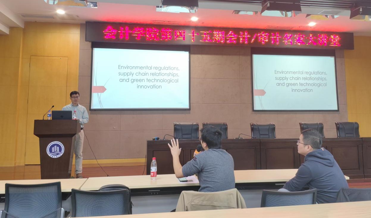 在最后的自由提问环节,安教授与参会师生就研究视角创新、如何结合现实情况延伸出更有价值的研究思路等问题进行了讨论和交流,参会师生受益匪浅。这次讲座不仅引发了同学们在环境会计方面更加深入地思考,还激励同学们更进一步提高研究能力、拓展创新思维。