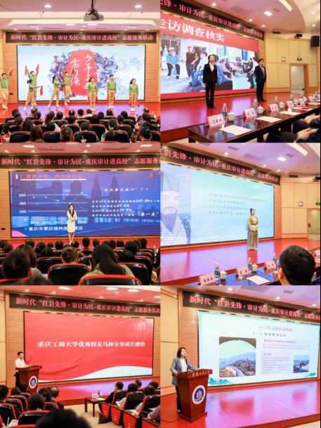在7200报告厅,志愿者们采取演讲、快板、情景剧等多种喜闻乐见的形式和载体,向现场师生生动宣讲党的二十大精神,推动党的二十大精神入脑入心、走深走实。公司优秀员工、市审计局投资二处干部、重庆市2023年最美机关青年马林,向同学们分享了自己在审计机关的成长经历与思想感悟,希望同学们成为推动重庆审计事业高质量发展的新鲜血液。市审计局组织人事处干部易星星为同学们宣讲审计机关公务员招录政策,解读招录审计干部的具体要求和注意事项,宣传未来审计人才培养和发展方向,吸引更多优秀学子了解审计、报考审计、投身审计。