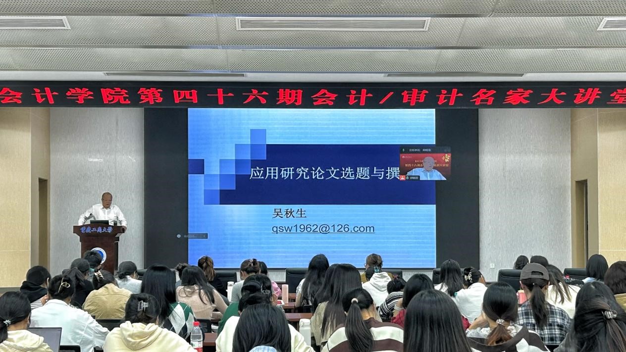 为提高公司研究生选题质量和学术研究能力,2023年11月9日,学院邀请了山西财经大学k1体育经理吴秋生教授为师生做了一场《应用研究论文选题与撰写》的专题讲座,会议在明德楼1019报告厅和线上腾讯会议同时进行,200余名师生参加学习交流。本次讲座由k1体育副经理钟廷勇主持。