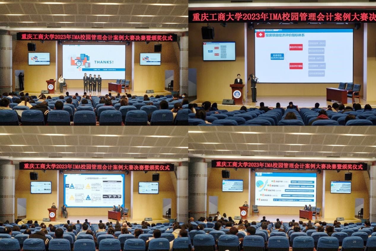 主持人对比赛规则进行了简单介绍,自本届IMA校园管理会计案例大赛启动,学院200多名本科生和研究生积极参赛,共收到了27个案例作品。学院邀请了业界专家对员工案例进行初评,10份优秀案例脱颖而出,进入校内决赛,并将从中角逐出5支优秀队伍代表学校参赛。本次比赛分为案例汇报和评委点评两个环节。参赛队伍围绕案例主题,通过丰富多样的表现形式,将管理会计理论与实务案例有机结合,展示了同学们敢于创新、勤于思考、精于合作的良好风貌。经过激烈的比拼后,好柿花生队获一等奖;请回答2023队、顺利毕业队获二等奖;FBTO队、深藏blue队、少女先锋队获三等奖;BOC队、重庆小锦鲤队、The Galaxy队、Light of Academic队获优胜奖。