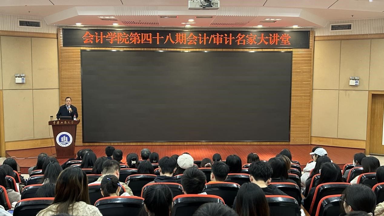 孙宝厚结合自身的工作学习经历,通过理论来源于实践,实践也能反过来指导理论的辩证思想,指出审计理论研究的重要性。他希望通过此次讲座让师生们能立足于审计实践来学习审计理论知识。