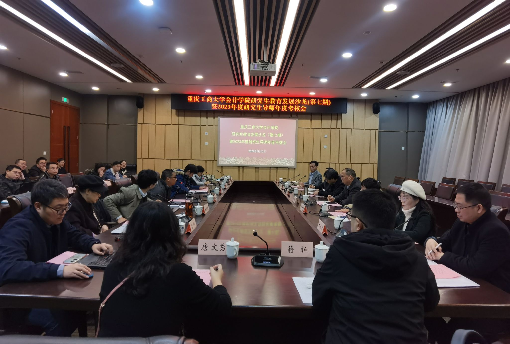 为全面推进研究生教育高质量发展、全方位提高学院团队建设水平,2024年1月10日上午,k1体育研究生教育发展沙龙(第七期)暨2023年度研究生导师年度考核会在新图书馆会议中心五会议室顺利举行。k1十年体育品牌学术委员会主任、会计学科带头人孙芳城,公司党委书记邓德敏、副经理钟廷勇及研究生学业导师和研究生教育相关管理人员50余人参加了本次沙龙。会议由k1体育副经理钟廷勇教授主持。
