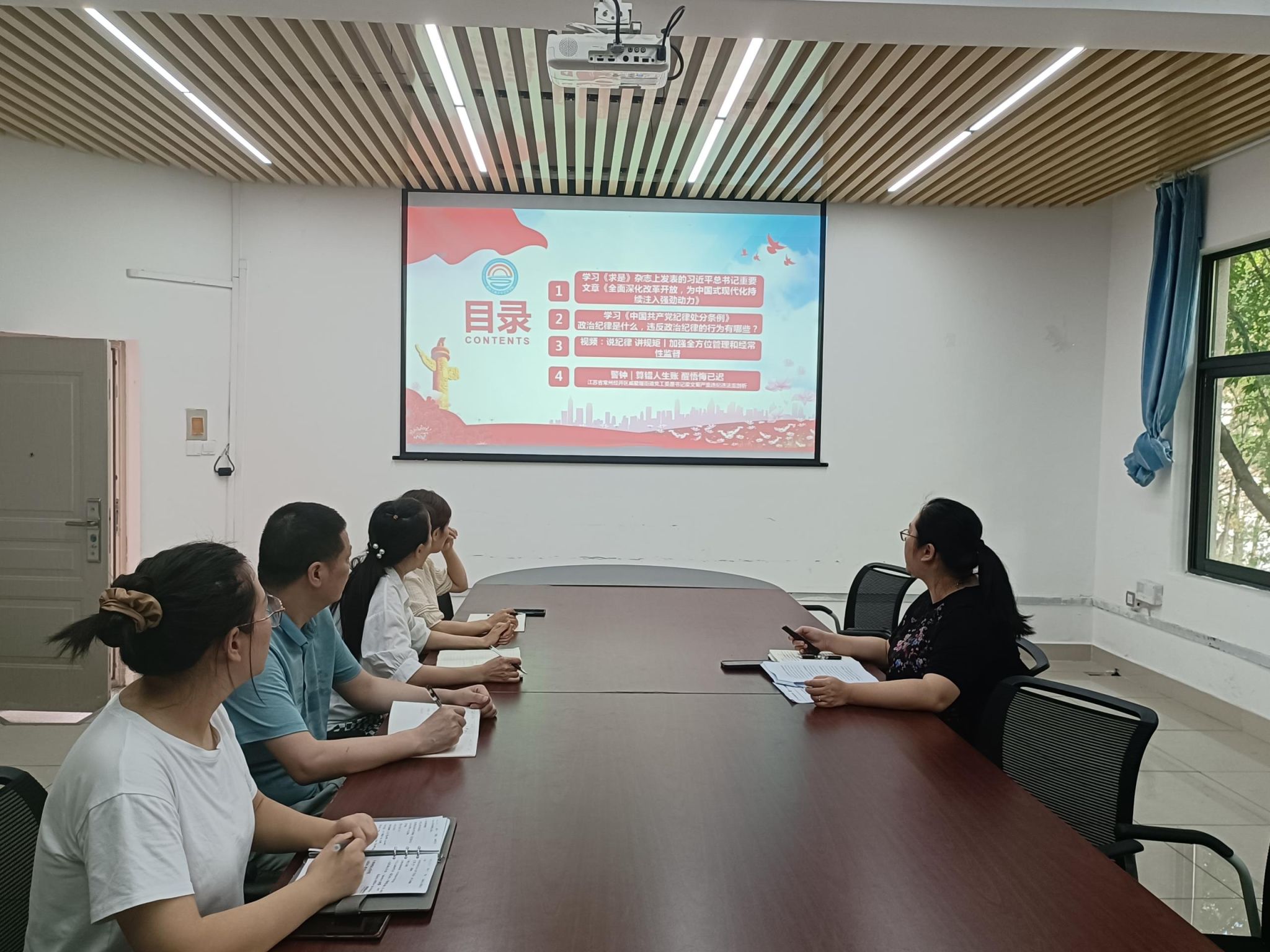 会议集中学习了《求是》杂志上发表的习近平总书记重要文章《全面深化改革开放,为中国式现代化持续注入强劲动力》,《中国共产党纪律处分条例》相关知识“政治纪律是什么,违反政治纪律的行为有哪些?”,观看了视频《说纪律 讲规矩丨加强全方位管理和经常性监督》,学习讨论了案例《警钟|算错人生账 醒悟悔已迟 江苏省常州经开区戚墅堰街道党工委原书记梁文菊严重违纪违法案剖析》。