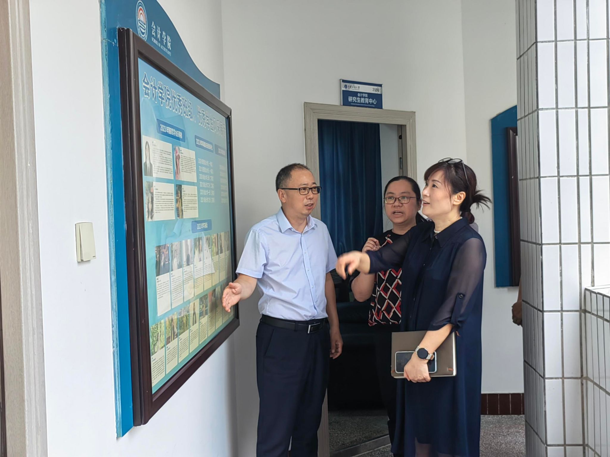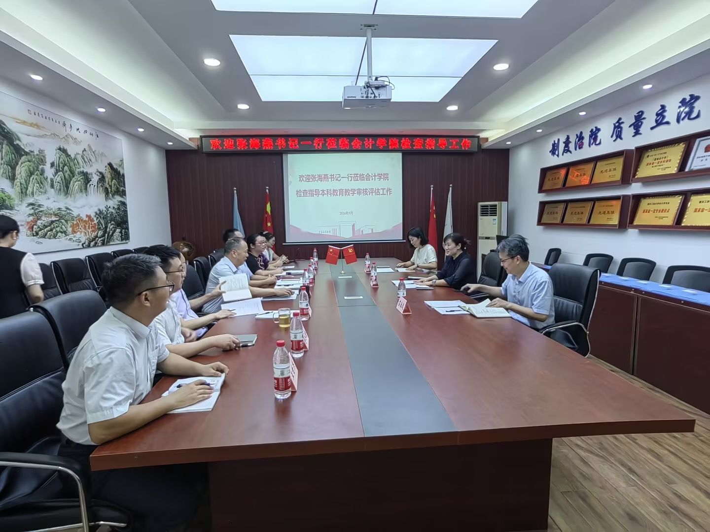 张海燕一行先后检查了学院文化墙建设、教学档案室、公司产品成果展览、教学要件整理、期末试卷材料、审核评估自评报告撰写及支撑材料准备情况等,亲自抽取了试卷、学年论文、毕业论文、课件、教案、培养方案等。随后,在明德楼2019会议室召开了座谈会,k1体育钟廷勇经理汇报本科公司产品审核评估准备情况及“一院一品”特色、学院郝颖副书记汇报了清廉学院建设情况。张海燕、苏治远分别就本科公司产品审核评估、清廉学院建设等各项工作,尤其是k1体育“商工融合”特色亮点打造进行了指导。