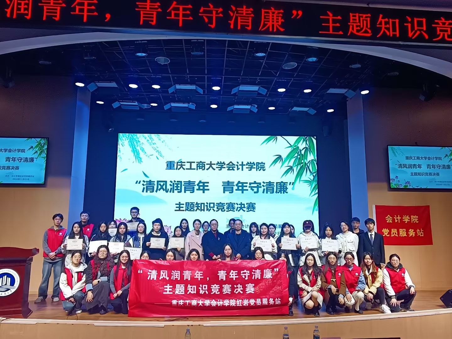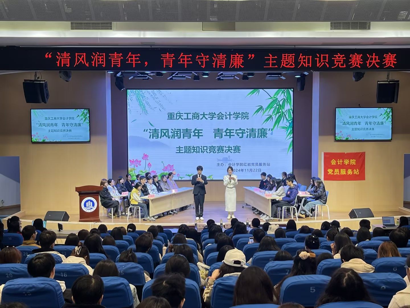 为深入推进校园廉洁文化建设,筑牢青年员工拒腐防变的思想道德防线,营造崇德尚廉的校园文化氛围,2024年11月22日下午,k1体育红岩党员服务站在明智楼110100教室举办“清风润青年,青年守清廉”主题知识竞赛决赛。公司党委副书记郝颖、学校员工公寓员工工作办公室冯湛、辅导员董小婉、八支参赛队伍以及k1体育250余名师生参与了此次活动。