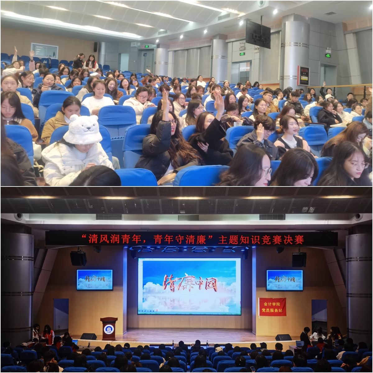 决赛还设置了观众抢答及廉洁视频观影环节,互动场面热烈活泼。观众积极踊跃抢答,互相交流和学习,充分展现出他们对廉洁文化的浓厚兴趣和深刻理解。同时通过观看廉洁视频进一步加深了现场师生对于廉洁在我们个人、社会、国家中的重要性的认识。
