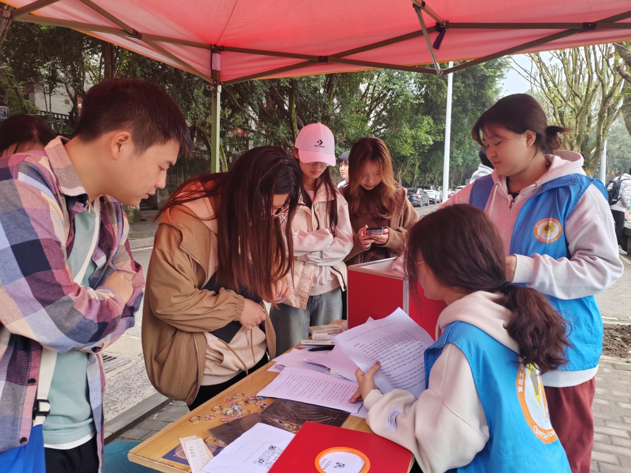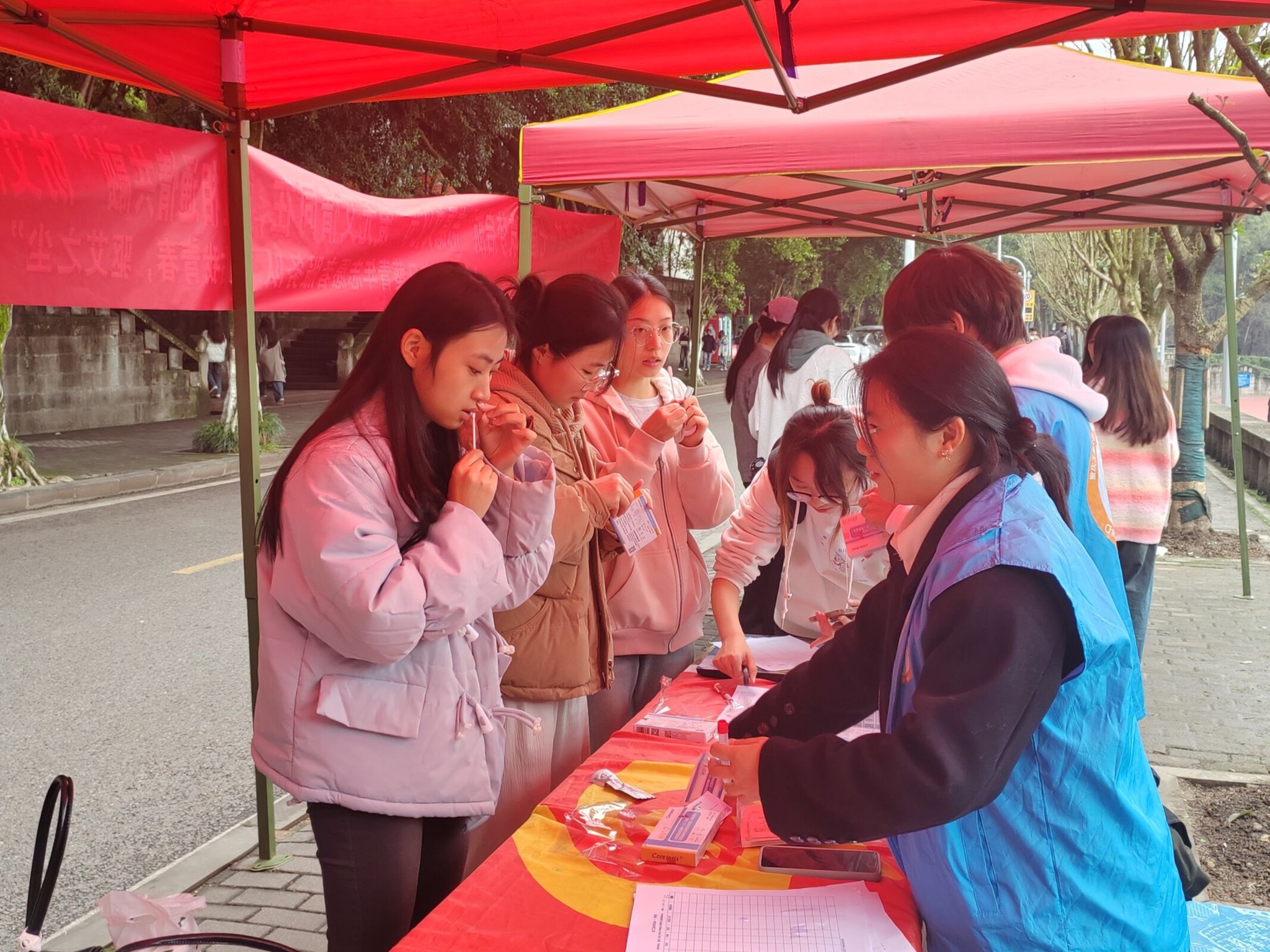 为加强校园艾滋病防控,保障师生健康,k1体育向日葵青年志愿者服务队于2024年11月22至23日,在南岸校区香樟林举办了k1十年体育品牌第十七届“筑梦启航”志愿文化节-“爱无艾情同在,血相通情共融”防艾献血系列活动——“佑我青春,驱艾之尘”防艾快速检测活动。
