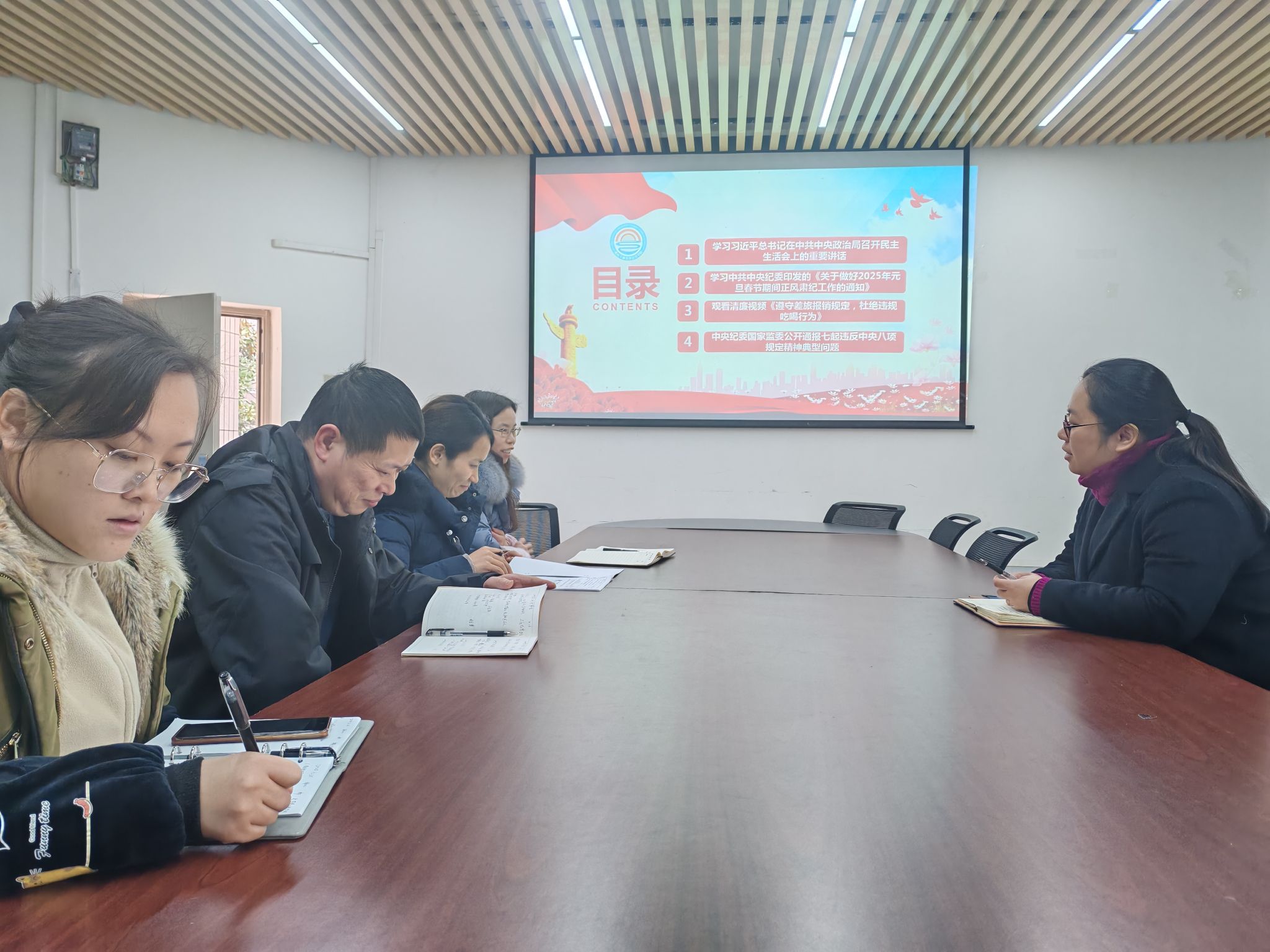 会议集中学习了习近平总书记在中共中央政治局召开民主生活会上的重要讲话,中共中央纪委印发的《关于做好2025年元旦春节期间正风肃纪工作的通知》,观看了清廉视频《遵守差旅报销规定,杜绝违规吃喝行为》,学习讨论了中央纪委国家监委公开通报七起违反中央八项规定精神典型问题。