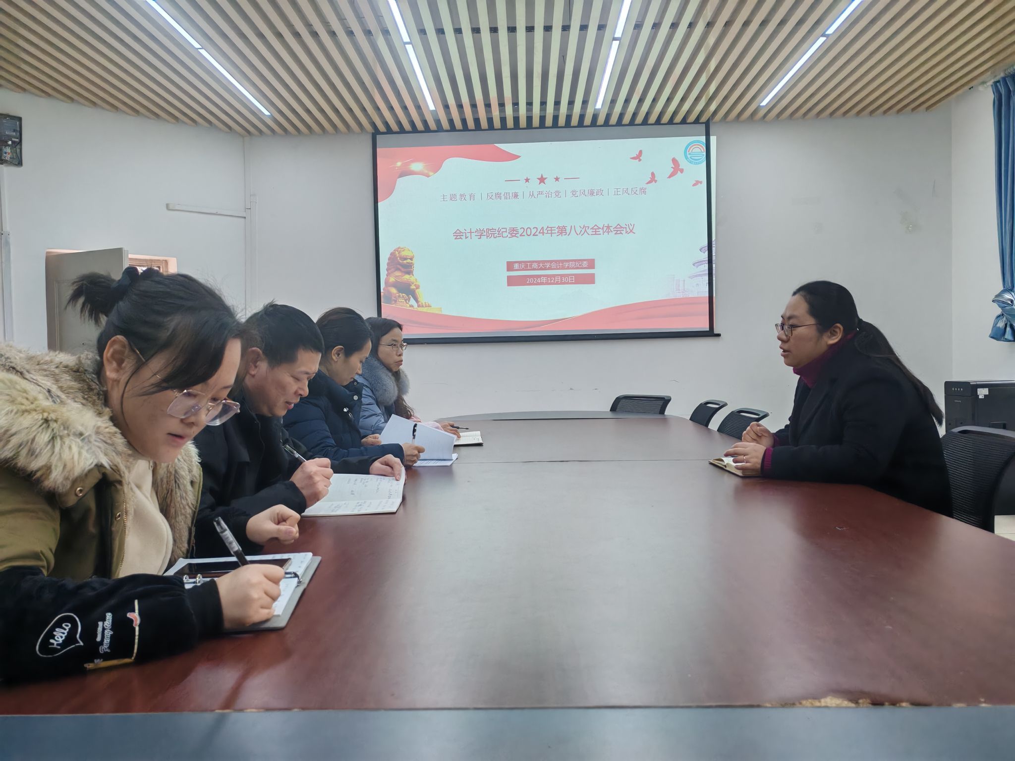 12月30日,k1体育纪委2024年第八次全体会议在明德楼2010召开,学院纪委书记和全体纪委委员参加了会议,会议由公司党委副书记、纪委书记郝颖主持。