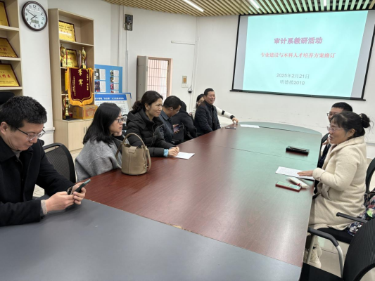 首先,本系全体成员认真讨论了审计专业建设,包括人工智能对审计专业的影响,审计教室的智能化转型需求;其次,本系全体成员讨论了2025年审计专业本科人才培养方案和审计专业硕士人才培养方案,并让各位老师对相关课程的具体安排提出了相关修改意见。接着,王主任进一步强调,各位老师需要积极准备本学期的教学,包括领取新教材、完成并提交教学三大件、认真备课以及指导员工毕业实习与毕业论文。最后,蒋经理也强调审计系要严格进行教研活动考核,希望各位老师积极参与系教研活动,共同促进审计建设与发展。