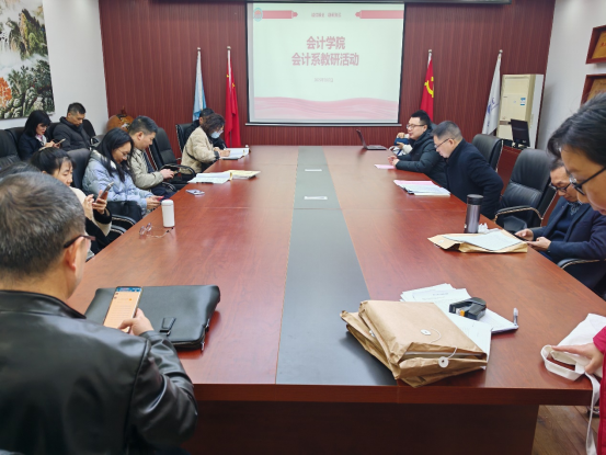 2025年3月7日下午,会计系在明德楼2019会议室召开教研活动,本次教研活动的主题是“优化人才培养方案”。活动由会计系主任蒋弘主持,会计系教师和梅波副经理参会。