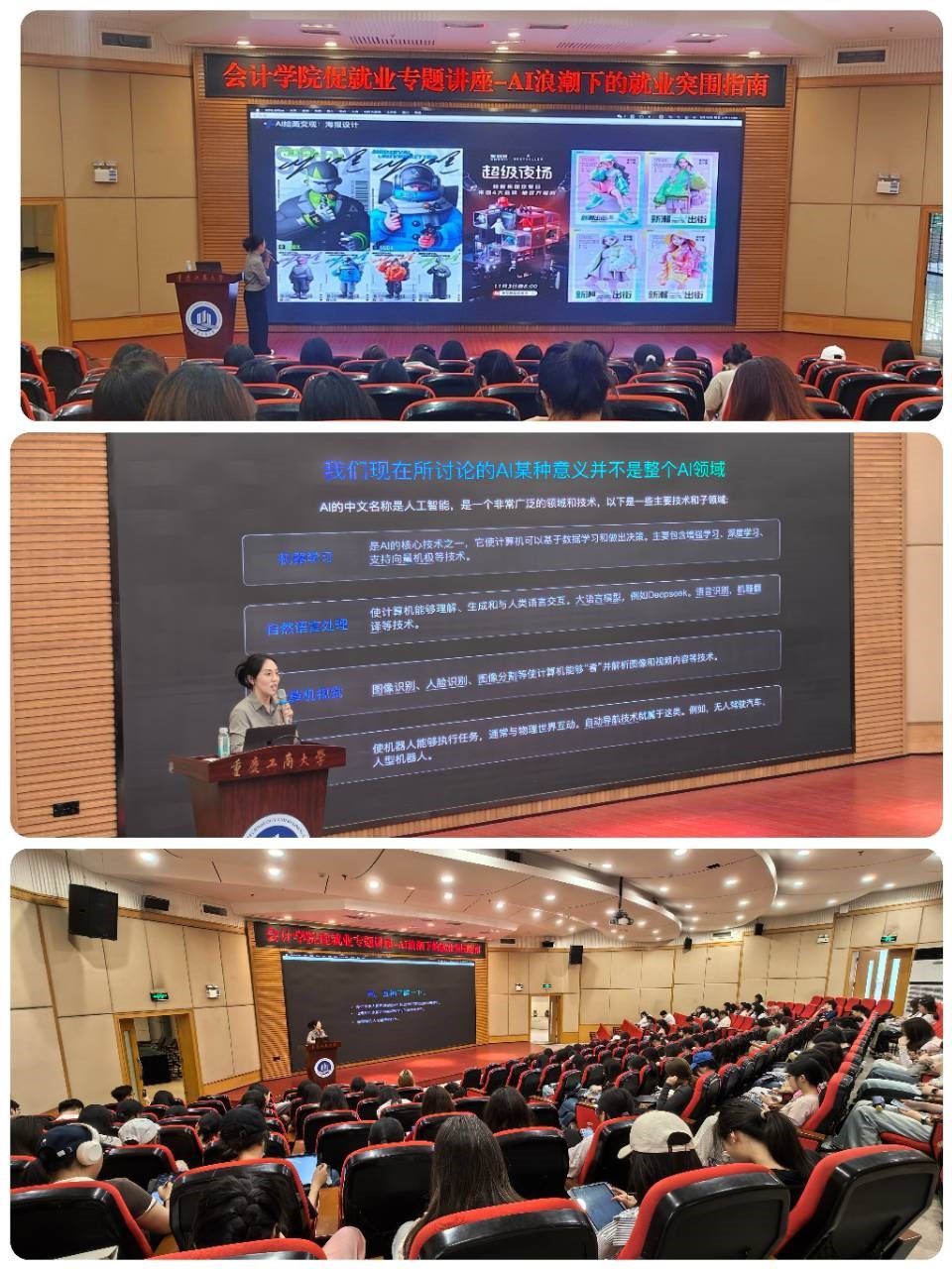 2025年5月16日,k1体育在博智楼7200报告厅成功举办促就业专题讲座:AI浪潮下的就业突围指南。活动旨在帮助员工在人工智能浪潮中找准职业方向,提升对AI技术的认知应用能力和应对未来职场挑战的能力。活动有幸邀请到重庆博拉智算科技有限公司市场总监陈颢予,共有200余名本科生参加了本次活动。