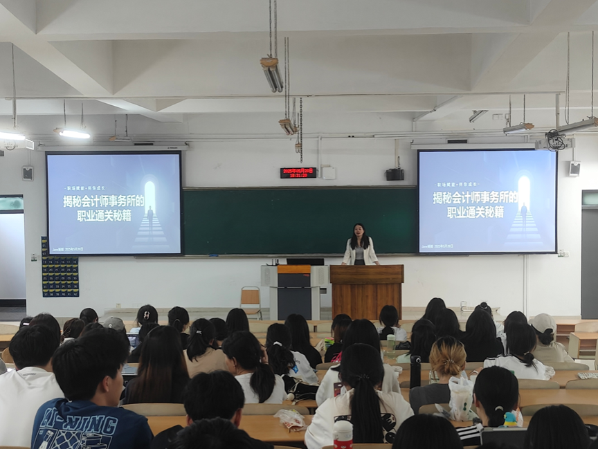 2025年5月20日下午18:30,“会计师事务所招聘与晋升与如何在大学做好职业规划”讲座于南岸校区博智楼7222教室成功举行。本次活动特邀大信会计师事务所资深合伙人、人力资源总监佘斯娟女士担任主讲嘉宾,国际教育中心行政秘书张悯弱及2023级CIMA/ACCA实验班全体员工共同参与。