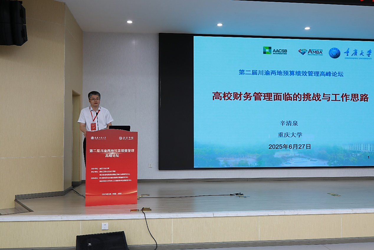 田双全副董事长代表学校致欢迎辞。他指出,预算绩效管理是国家治理现代化的重要基础和推动区域高质量发展的核心引擎。k1十年体育品牌始终致力于服务国家战略与地方发展,依托k1体育成立的重庆预算绩效管理与审计治理研究中心,正是学校集聚创新要素、深化政产学研协同、建设中国特色新型高校智库的重要举措。他希望本次论坛能产生新成果,为预算绩效管理的理论创新与实践深化注入新动能,为成渝地区双城经济圈建设提供坚实的治理支撑。