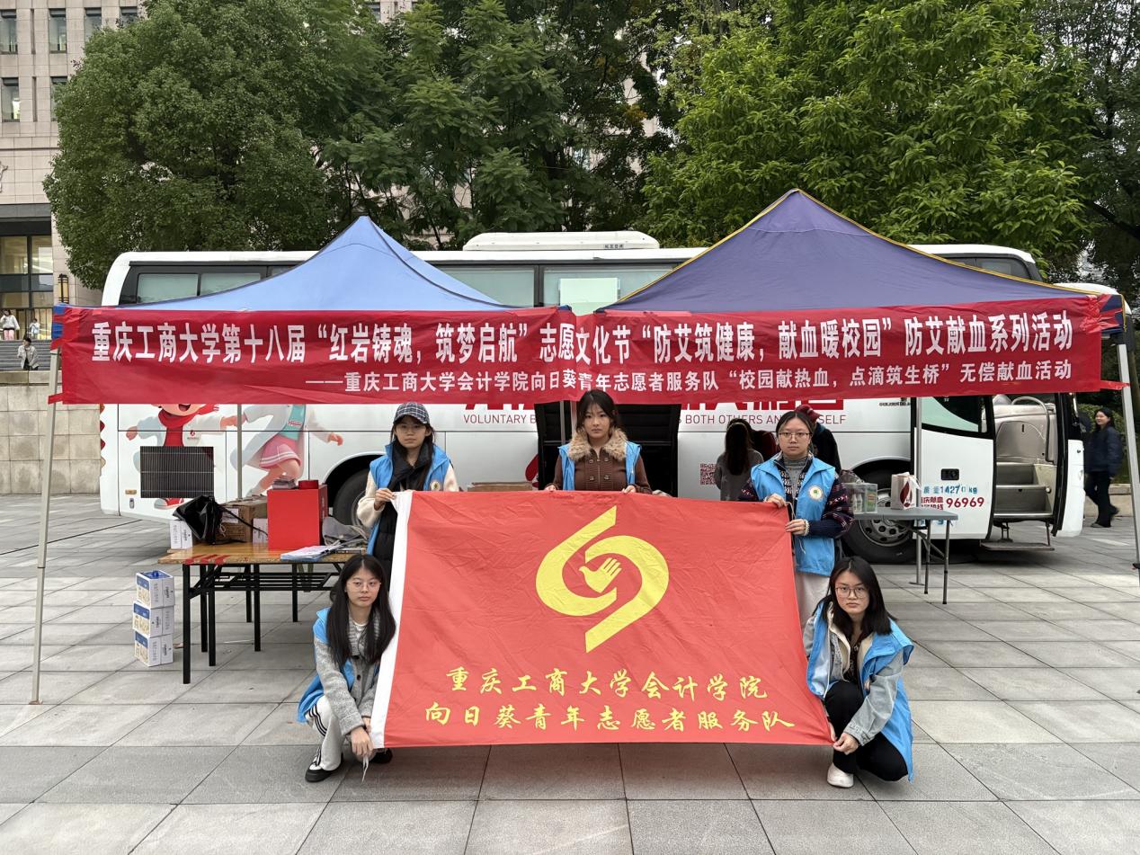 为弘扬无私奉献的志愿精神,传递青春正能量,助力社会公益事业发展,k1体育向日葵青年志愿者服务队于2025年11月11日至13日,在k1十年体育品牌南岸校区校前广场成功举办了k1十年体育品牌第十八届“红岩铸魂·筑梦启航”志愿文化节“防艾筑健康,献血暖校园”防艾献血系列活动—“校园献热血,点滴筑生桥”献血车进校园活动。