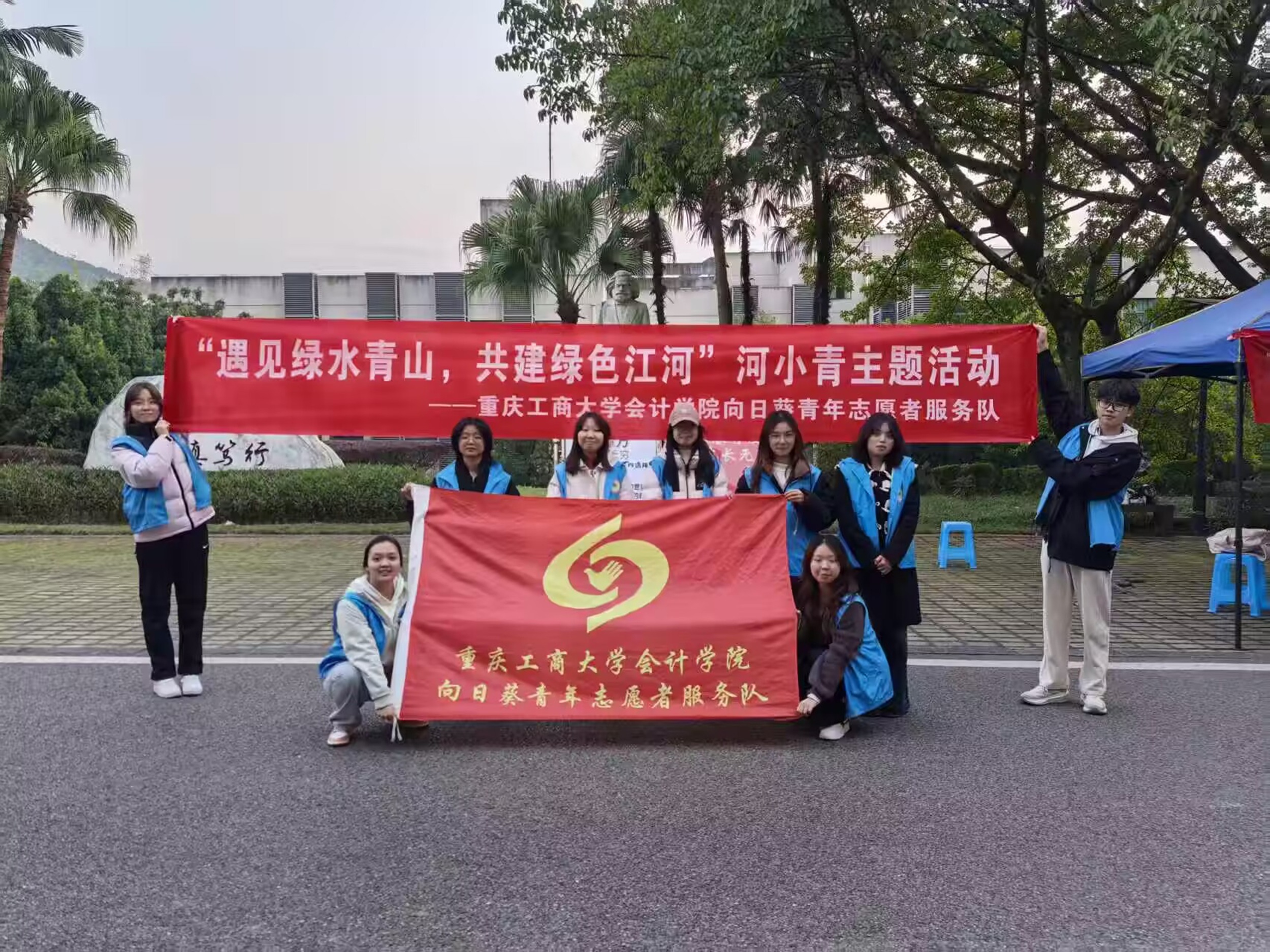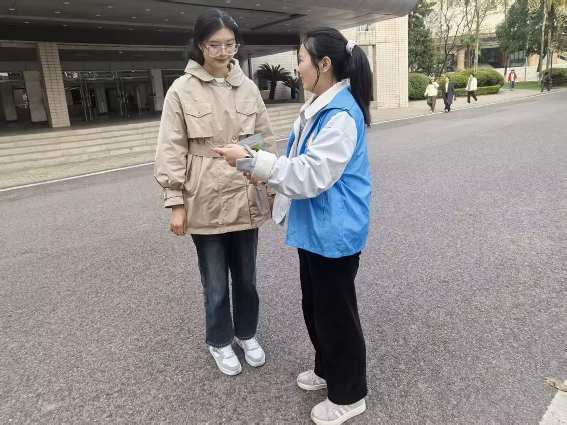 活动前期,志愿者团队进行了周密筹备。他们结合河小青生态环保项目的核心内涵,围绕“河流生态系统构成”“重庆本土江河保护现状”“青年在水环境保护中的责任”等维度,精心设计了趣味知识问答题库。同时,团队还制作了主题鲜明的宣传横幅,为线下宣传活动奠定了坚实基础。