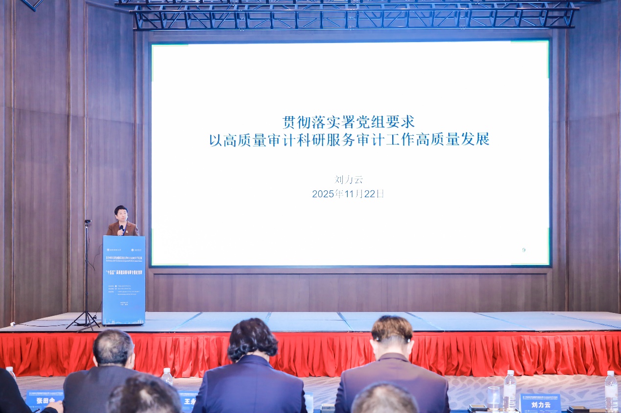 刘力云代表中国审计学会和审计署审计科研所致辞。她指出,学习好贯彻好党的二十届四中全会精神,是当前和今后一个时期全党全国的一项重大政治任务。无论是审计实务工作者,还是审计理论研究人员,都应自觉把思想和行动统一到党的二十届四中全会的精神上来,把智慧和力量凝聚到实现全会确定的各项目标和重点工作任务上来,以高质量审计监督促进“十五五”规划落实落地,护航经济社会高质量发展。随后,她以《贯彻落实署党组要求 以高质量审计科研服务审计工作高质量发展》为题做了专题报告。