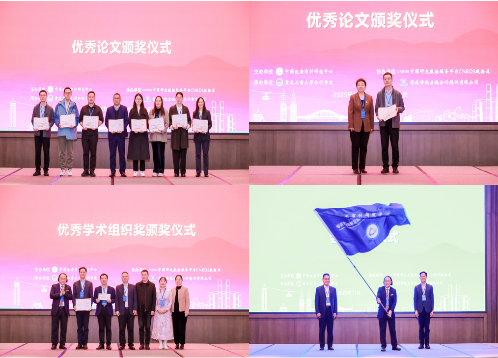 西南财经大学蔡利教授主持了闭幕式,中国政府审计研究中心国际学术研究与交流部主任廖林教授宣读了《优秀论文奖获奖论文名单》,随后举行了优秀论文奖、优秀学术组织奖颁奖仪式和会旗交接仪式。最后,北京化工大学经济管理学院经理李宾教授代表下一届审计理论创新发展论坛承办单位致辞。