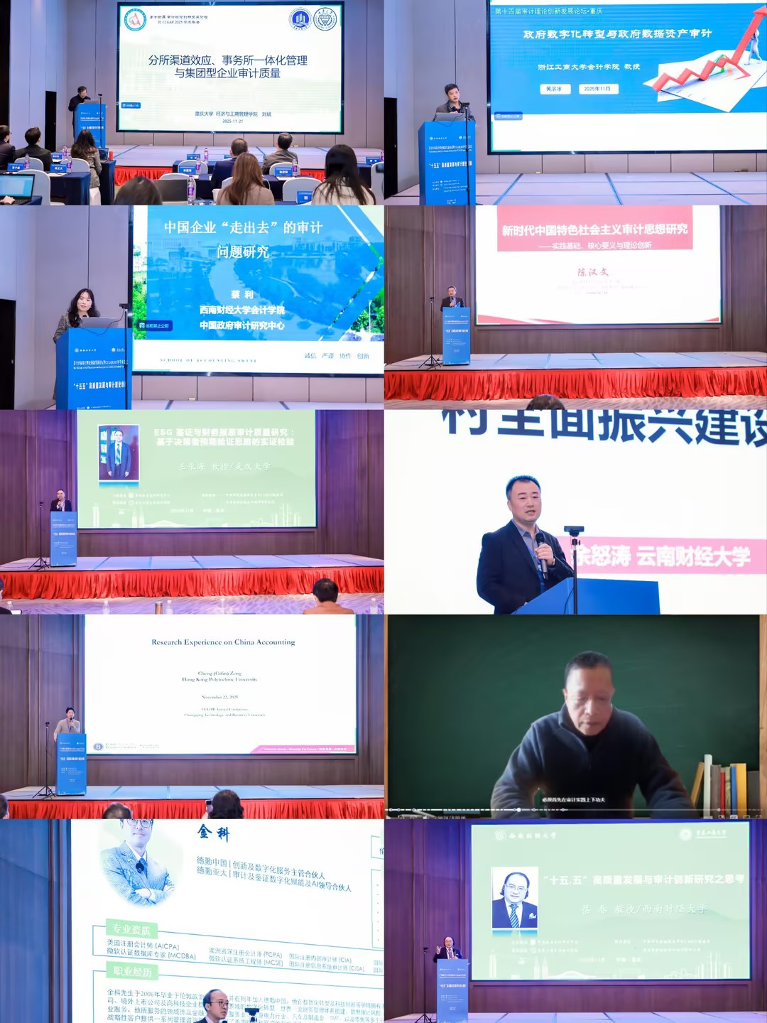 在分论坛环节,共计举行10个平行论坛和1个青年学者论坛暨研究生主题论坛。论坛组委会遴选出的58篇论文,围绕国家审计、审计费用、审计质量、审计决策、审计与绿色治理、内部监督、审计委员会、数智化与审计转型等主题进行了分享交流。
