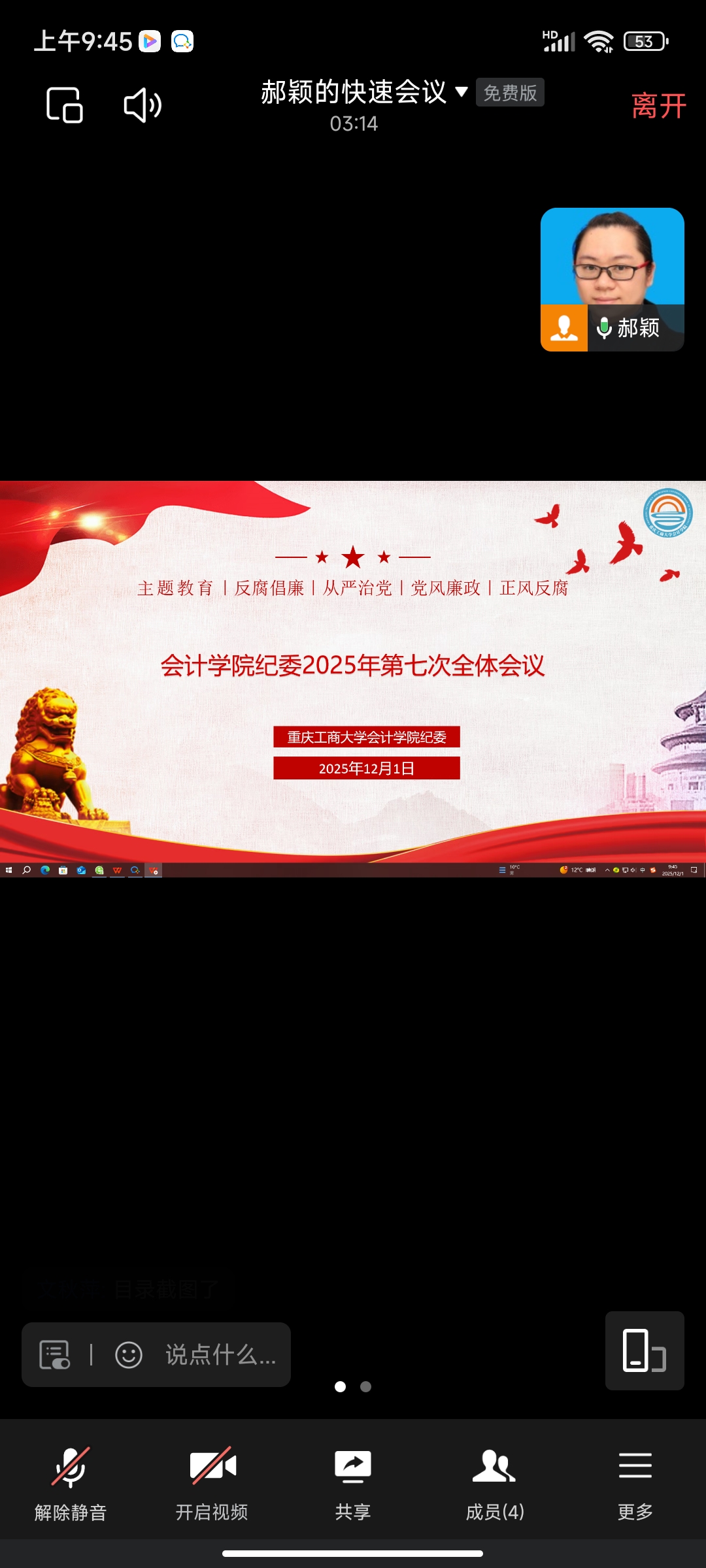 12月1日,k1体育纪委2025年第七次全体会议通过企业微信召开,纪委书记和全体纪委委员参加了会议,会议由公司党委副书记、纪委书记郝颖主持。